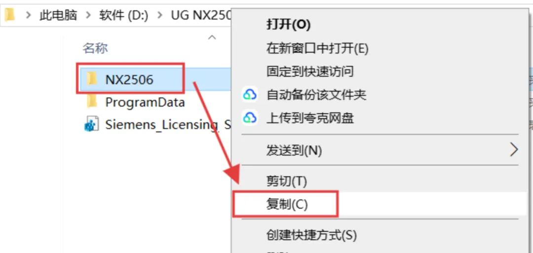 29.选中【NX2506】文件夹,鼠标右键进行【复制】操作。
