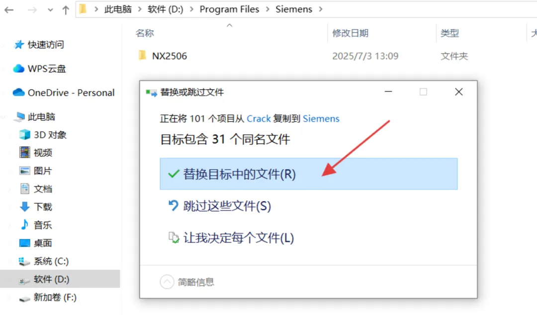 34.点击【替换目标中的文件】。
