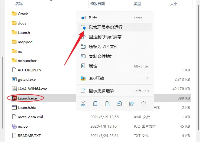 13.打开安装包解压后的【UG1980】文件夹,鼠标右击【Launch】选择【以管理员身份运行】。