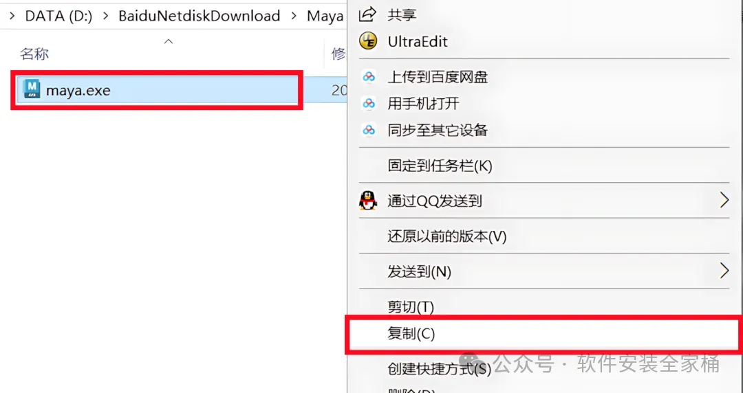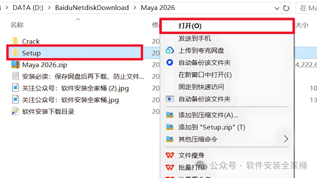 1.打开下载的Maya2026软件安装包,鼠标右击压缩包选择【解压到当前文件夹】。