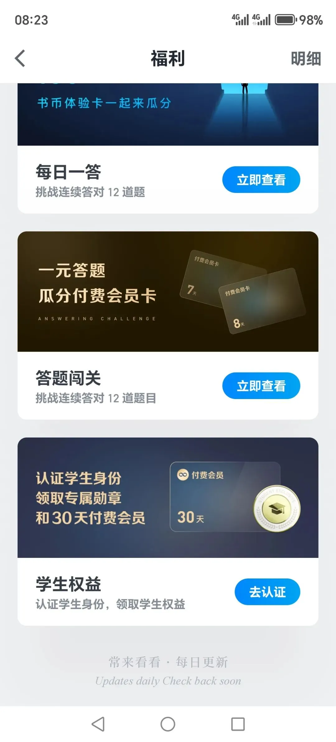 阅读满足多少分钟后就可以领取书币或者会员体验卡,足够你接力阅读下去了,另外它还可以把电子书资源导入书架,非常方便。此外它的笔记划线和阅读笔记导出功能也很良心,在AI加持下还可以帮你随时解答书中的名词,最后就是书单查询和书友互动等活动页比较丰富,算是腾讯提供的良心APP之一了。最后,大学生用户可以有专门的一个月会员福利。你还可以查看年度阅读报告,这份阅读数据是你最宝贵的人生财富之一。