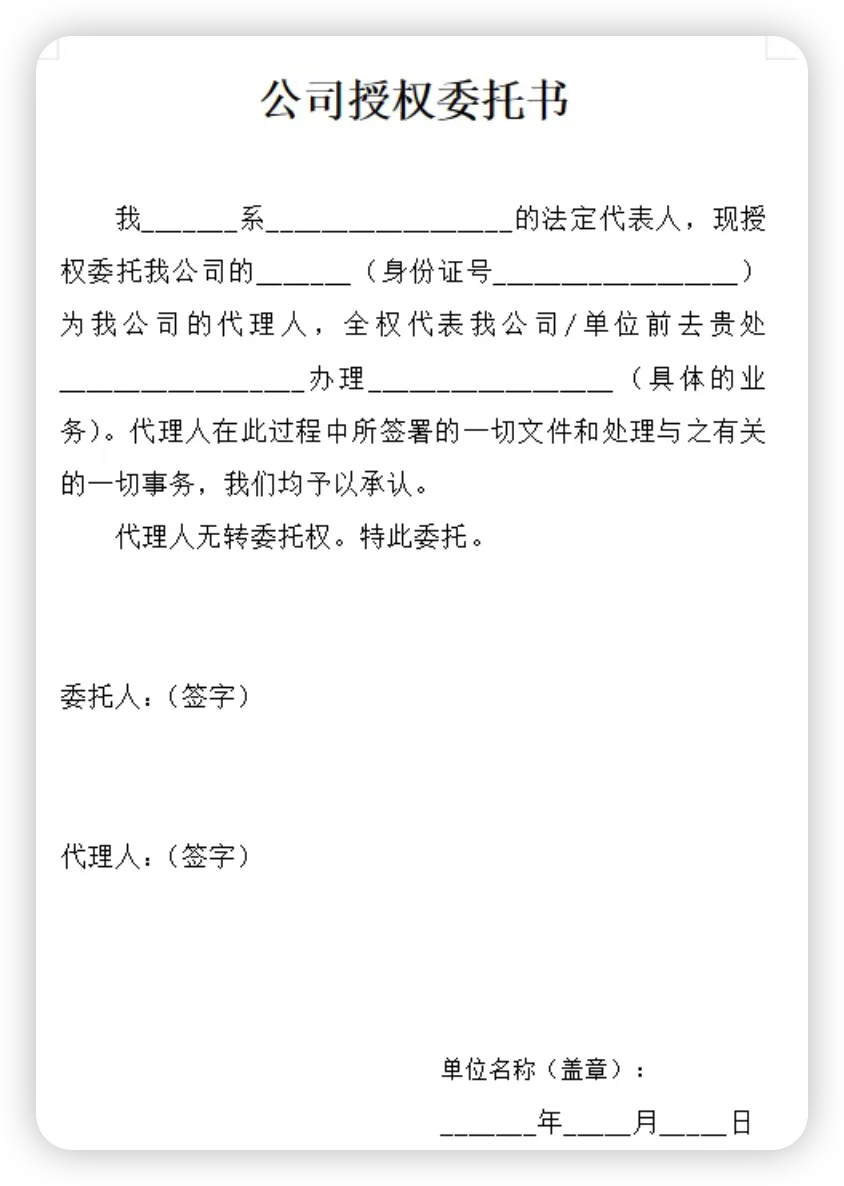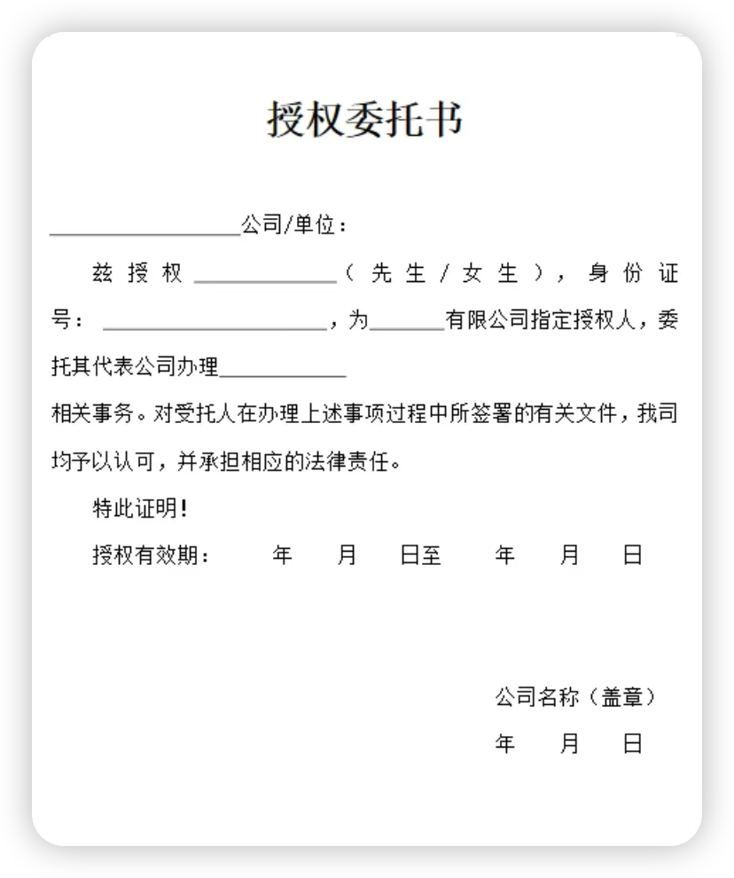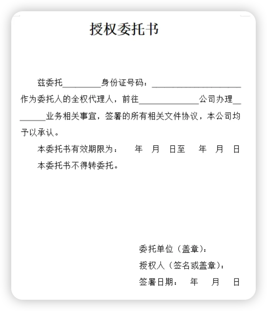 授权委托书 模板 Word 电子版 (免费下载打印)