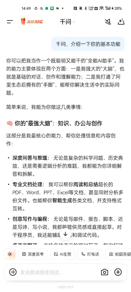 本次使用的是最近请大家免费喝奶茶的【千问】APP,希望这些文章能帮大伙能够理解AI是什么,能做什么。