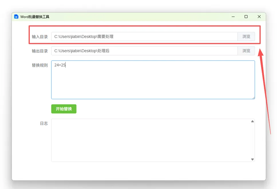 工具支持直接选择一个文件夹作为输入目录,程序会自动扫描其中所有 Word 文件。