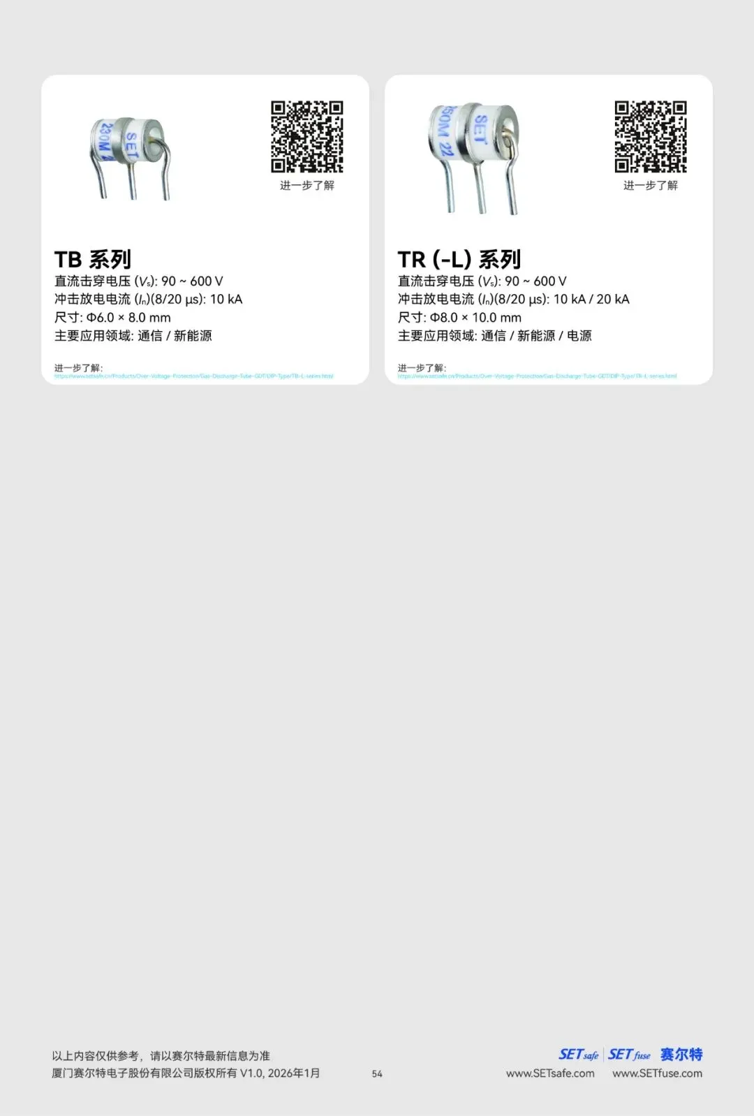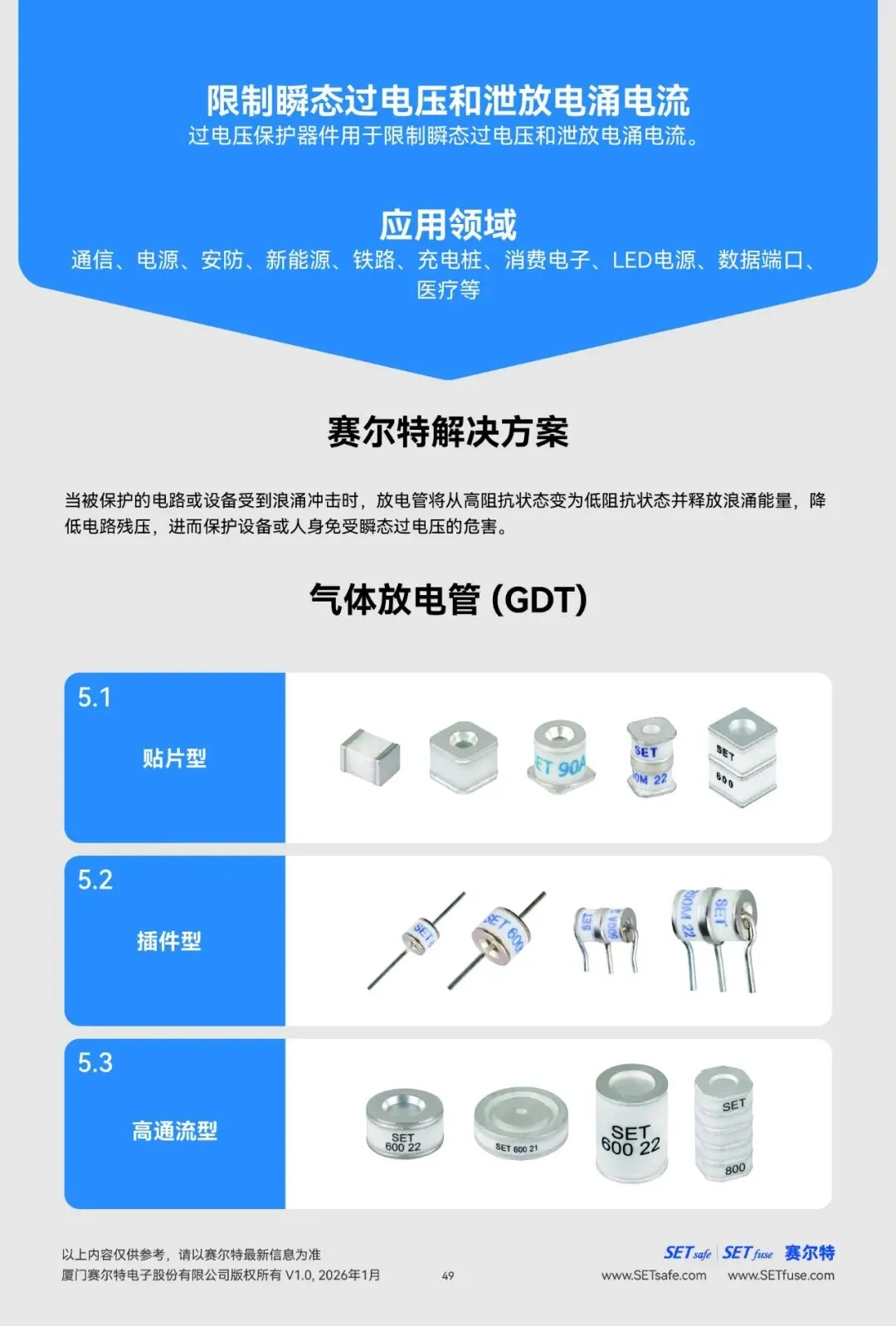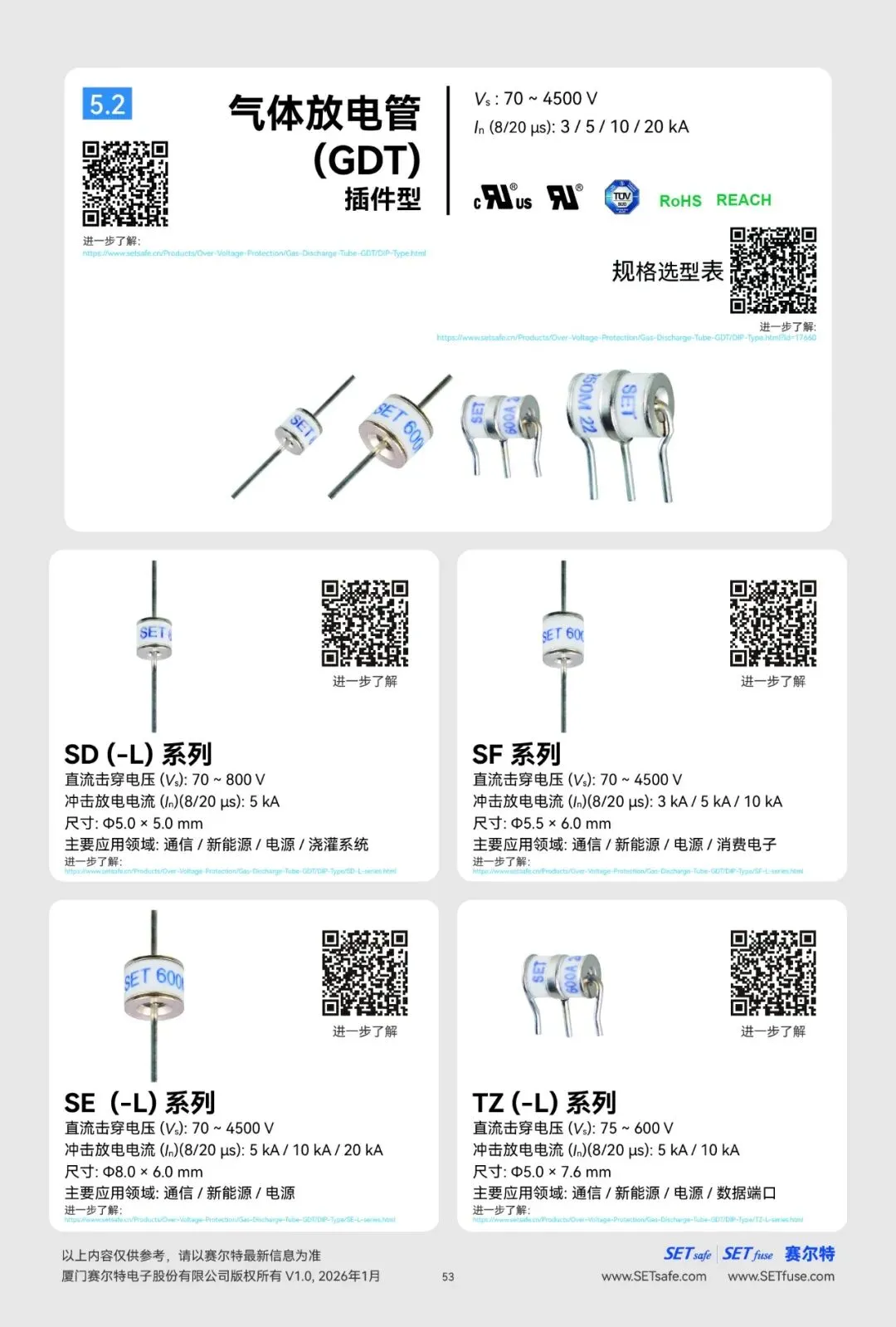 赛尔特公司(SETsafe | SETfuse)的气体放电管产品: