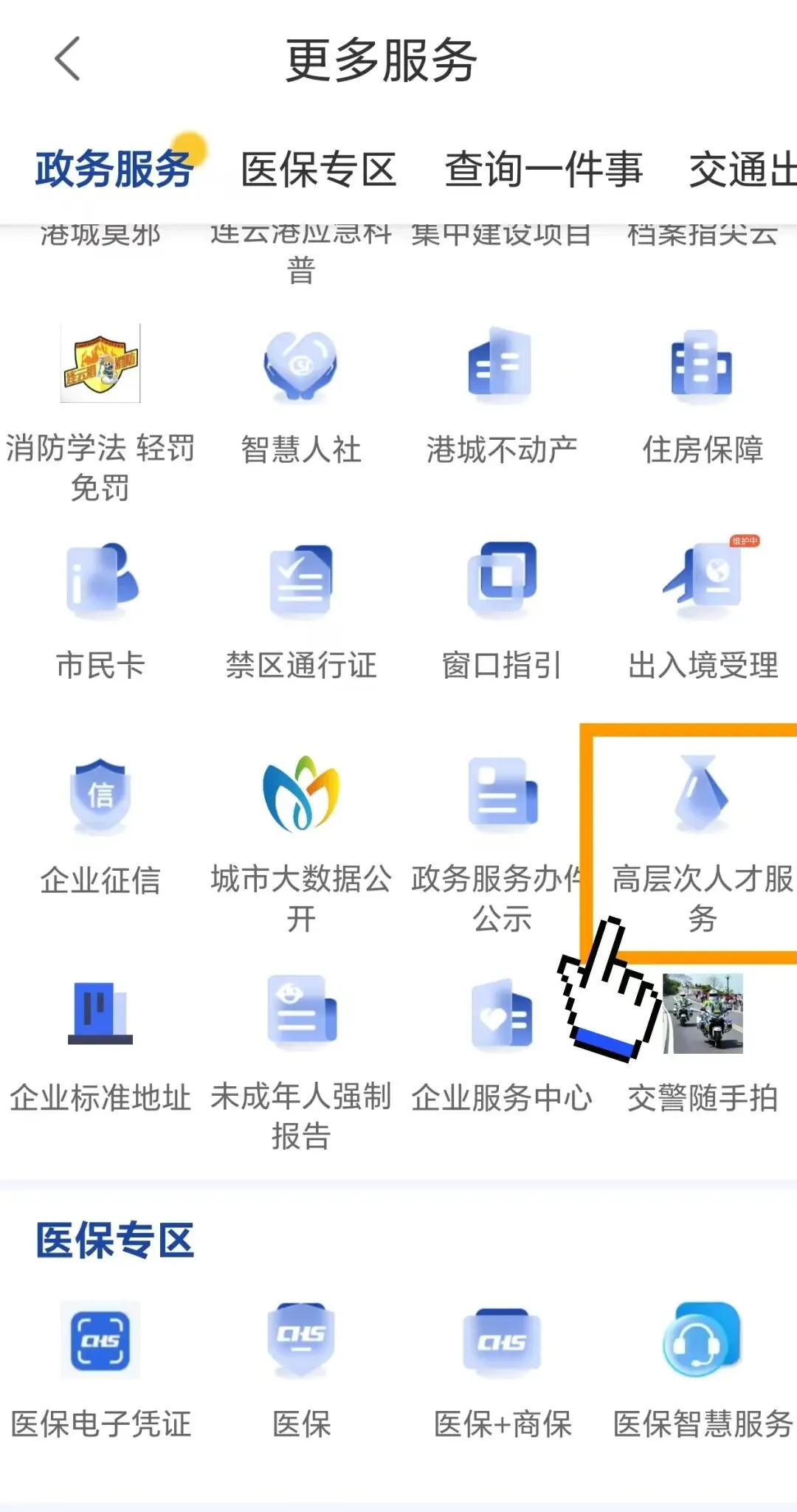 第二步:找到“高层次人才服务”图标,点击进入。