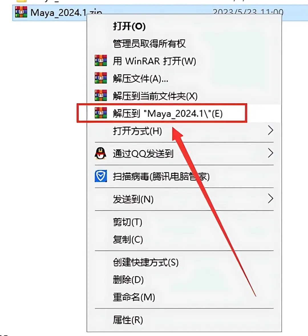 1.打开【Maya2024】安装包,鼠标右击压缩包选择【解压到Maya-2024】