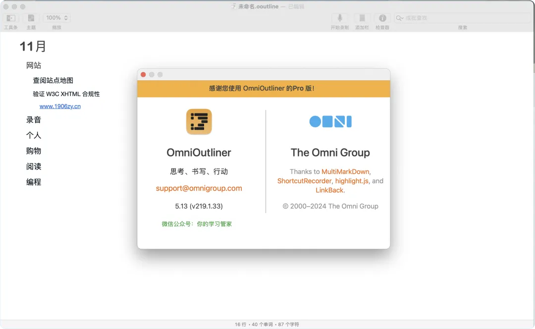 Mac版信息大纲整理软件 OmniOutLiner Pro 5.14.3 中文激活版(附授权码)安装包 -网盘分享