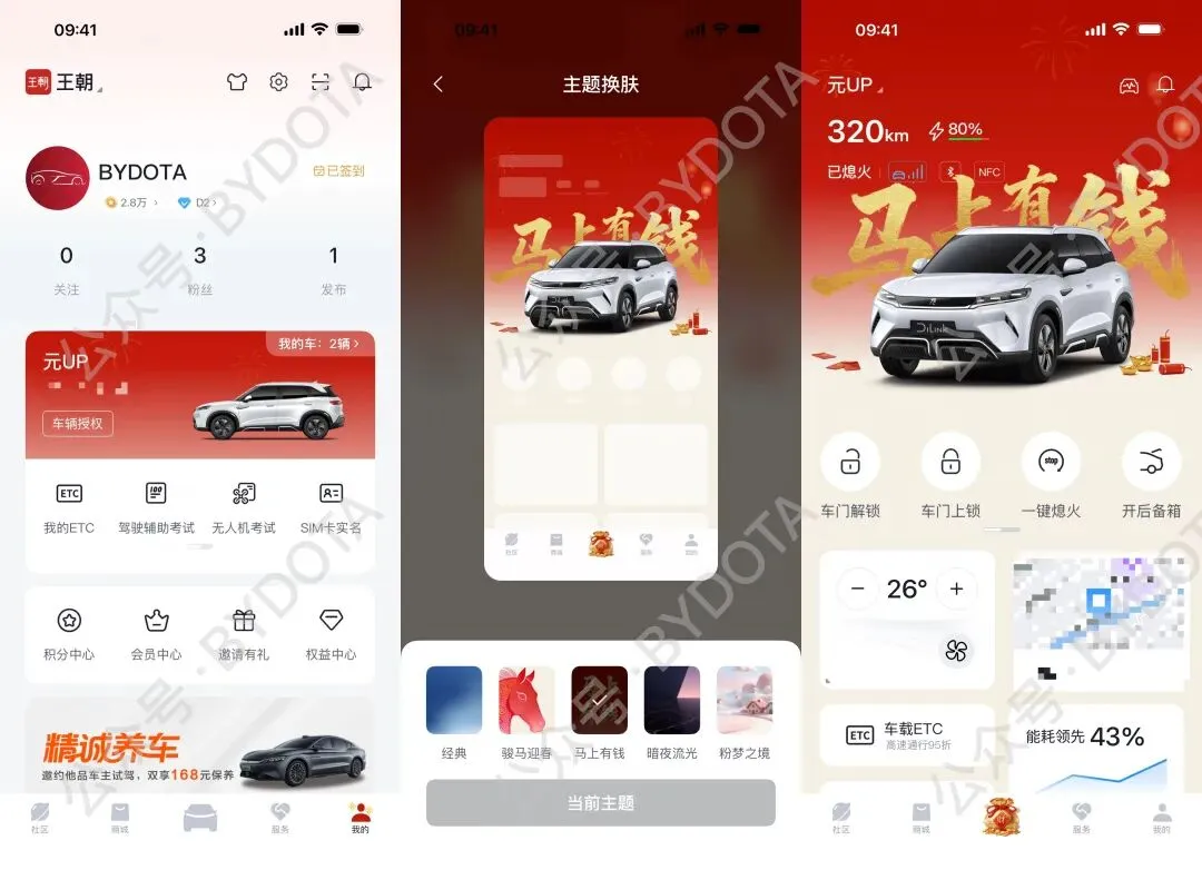 此次比亚迪 App 上新的四款春节限定皮肤各有特色,骏马迎春、马上有钱贴合马年新春的美好寓意,将传统年味与新年期许融于视觉设计,暗夜流光、粉梦之境则兼顾了潮流感与个性化,满足不同车主的审美喜好,无论是偏爱传统喜庆风格,还是追求时尚独特设计,都能找到心仪的皮肤样式,让车主的比亚迪App界面告别单调,年味随行。