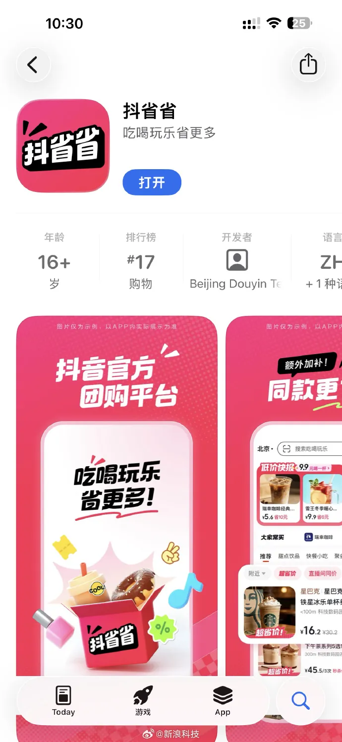 抖音上线官方团购App“抖省省”,覆盖甜点饮品、快餐小吃、超市购物等品类