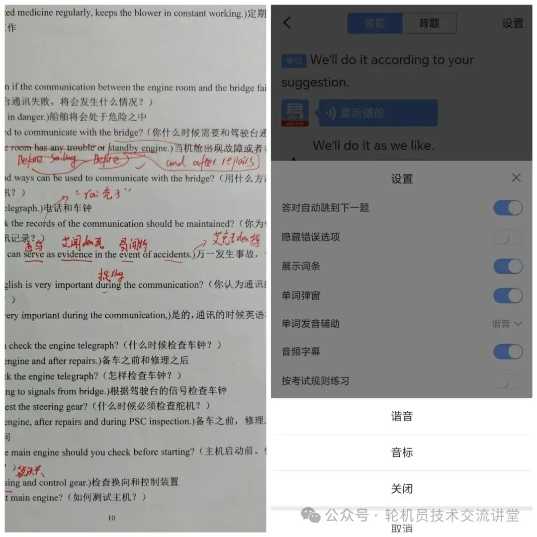 好在船员易考通每道题目都有翻译,并且还支持单词在线查看翻译,以及单词本的功能,为我理解省下了不少时间。同样还是建议大家直接刷2025新版通关题库即可!
