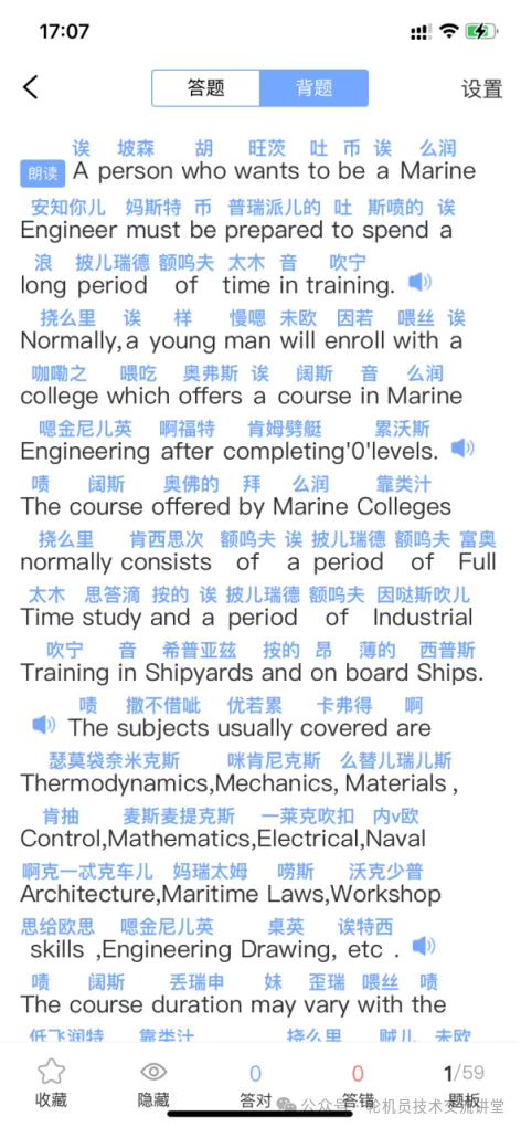 另外我还发现,船员易考通软件他是把题目按照大纲知识点的顺序进行排列了,把主机示功图的题放在一起,管理浸水状态的图片题放在一起,这样你刷题的效率会更快,特别针对一些是你隐藏一部分题后不会的题型。除此之外,他的英语阅读理解讲解的比船员易综合要好的多。