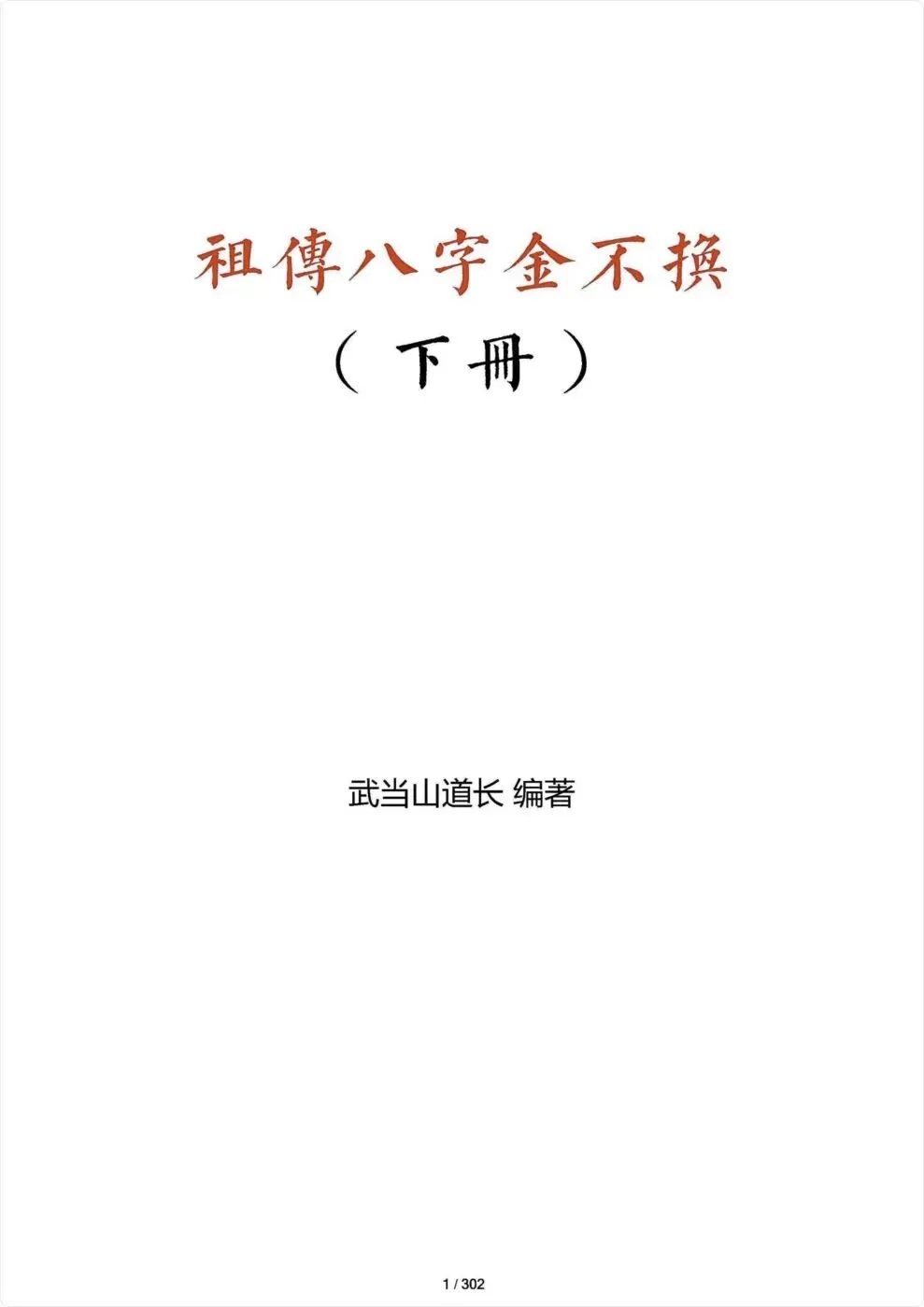 《祖传八字金不换》上下两册 PDF 武当山道长编著 共622页