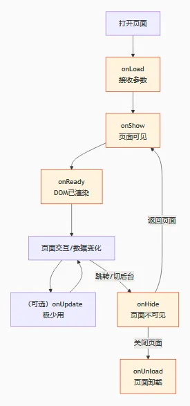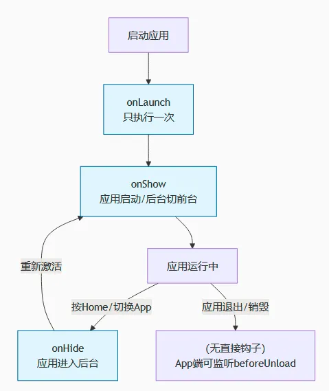 onShow:每次从后台切回前台都触发,适合刷新首页数据、恢复轮播图自动播放 -