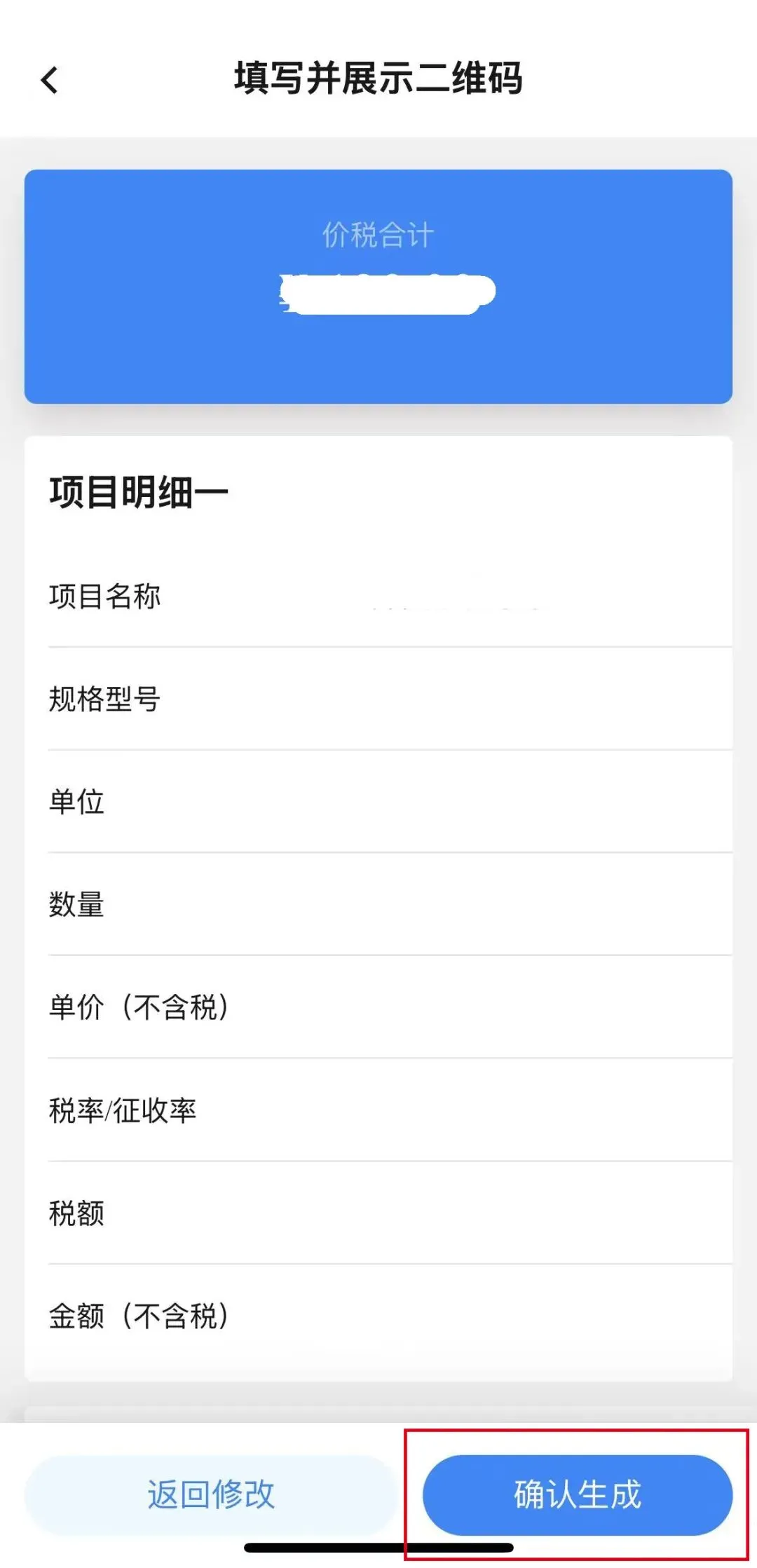 录入相关信息,点击确认生成