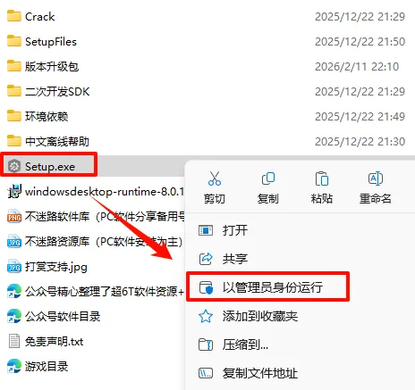 5.返回安装包文件夹,鼠标右键点击“Setup.exe”选择“以管理员身份运行”