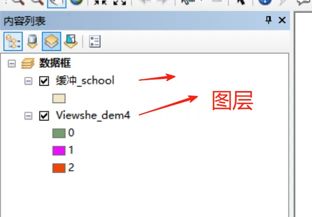 在ArcMap中,可以将一个地图文档理解为一幅地图(也可以是多幅地图,一般一个数据框对应一幅地图,但一个地图文档也可以包含多个数据框)