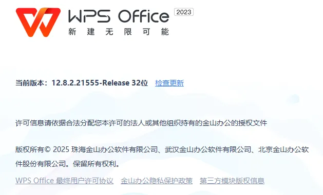 注意:WPS版本号并不是严格按照数字大小来区分版本的新旧或优劣。例如,“12.8.6.xxxxx”并不一定比“12.8.2.xxxxx”版本号更高或更好。因此,在选择WPS Office版本时,建议根据自己的需求和用途选择合适的版本。