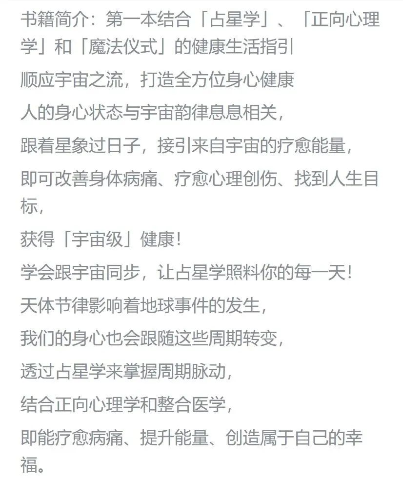 这是第一本,把占星学、正向心理学、魔法仪式揉在一起,教你“顺着宇宙过日子”的健康实操指南。