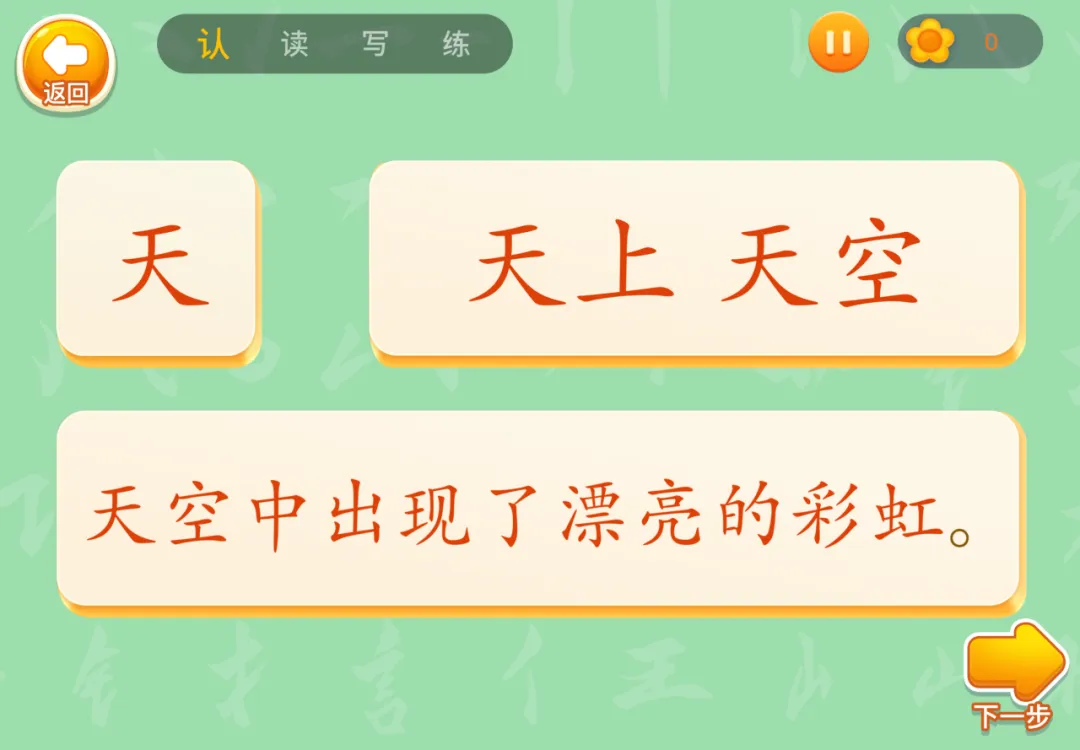 这款App用认读写练四个步骤识字,这一点很多App都大体相同。
