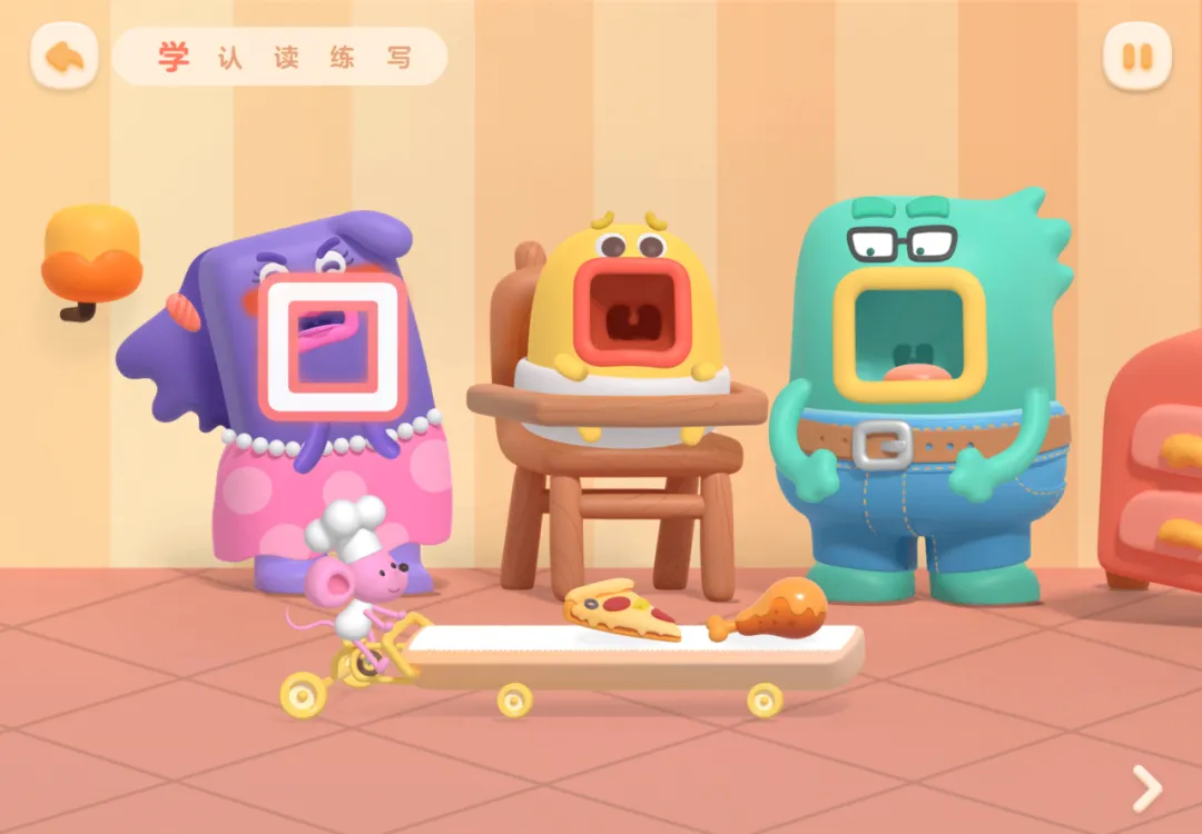 App仍是从学认读练写五个方面展开的。大品牌出品App的动画效果非常精致,并且还有一种特有的诙谐感,非常能吸引小朋友的注意。另外在识字认读的方面,App不再是单字朗读,而是帮助孩子们在词语中反复朗读练习,这对学龄前儿童的语言能力发育能起到很好的效果。
