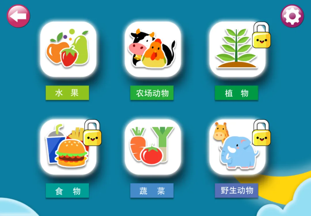 这是一款工具类App,适合辅助家长进行启蒙教育。其中识字卡部分发音标准,并且配有实物图片,拼音和相对应的英语单词。识字卡的种类丰富,词语涉及广泛,从水果,家具到自然风光都有相应的卡片分类