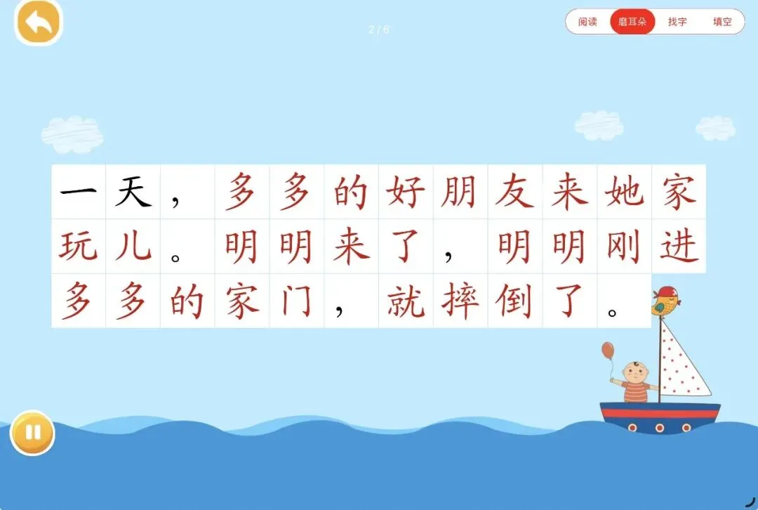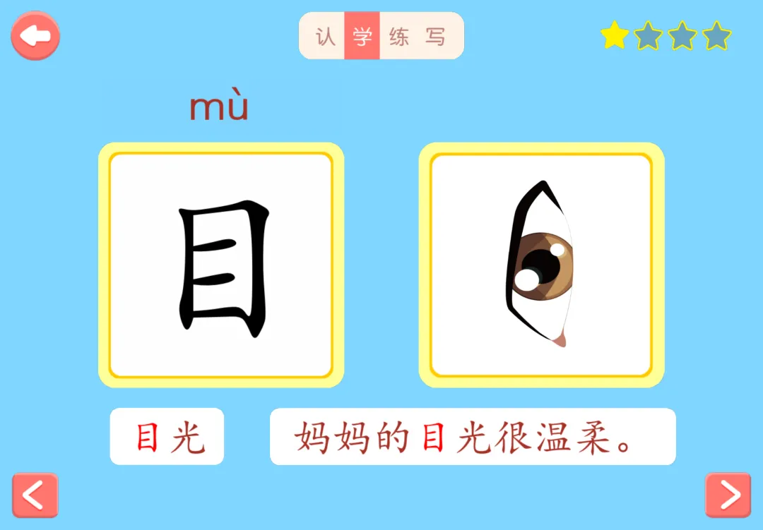 与上一款不同的是这个App更加注重识字阅读本身。每一个汉字不仅有组词而且有句子给孩子们展示,帮助孩子们形成基本的认知。App操作简明,从认学练写四个方面帮助小朋友巩固练习。另外App涵盖一二年级的课本识字和指读识字的功能非常适合幼小衔接阶段的儿童。