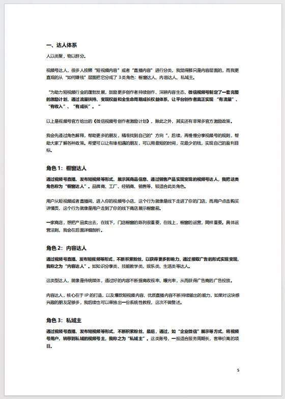视频号生态分为三大体系,细分为16种角色,精准定位是成功的基础。