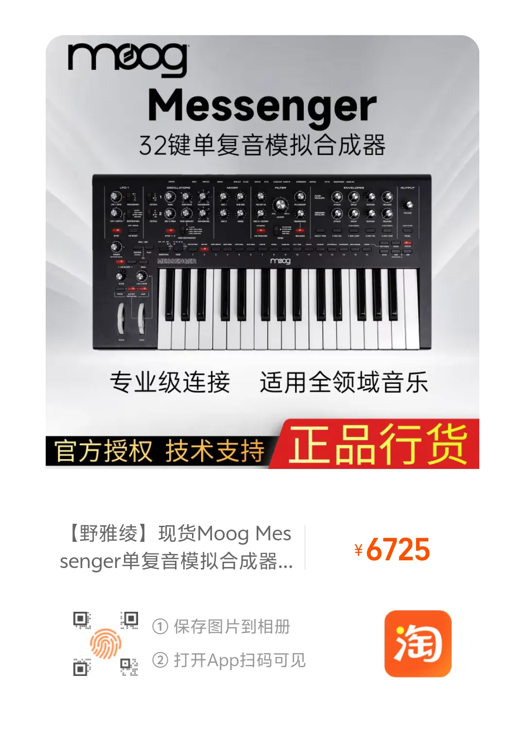 【淘宝】大促价保 https://e.tb.cn/h.SpuL4TTwxq8um5F?tk=WrhZf6iTkJt HU108 「【野雅绫】现货Moog Messenger单复音模拟合成器32键传奇音色」点击链接直接打开 或者 淘宝搜索直接打开
