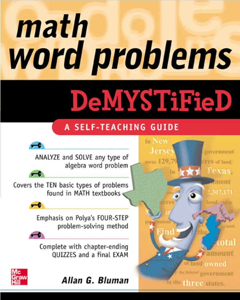 《Math Word Problems Demystified》(《数学应用题揭秘》)是麦格劳–希尔出版社(McGraw-Hill)“Demystified”(揭秘)系列中一本专注于数学应用题求解的自学指南,由资深数学教育者阿伦·G·布卢曼(Allan G. Bluman)于2005年编著出版。无论对于初学者还是进阶者,应用题始终是数学学习中的普遍挑战,学生们常常在面对一段段文字叙述时感到迷茫,不知从何入手。本书正是为了彻底改变这一困境而诞生。它并非一本普通的习题集,而是一套系统化、策略性的方法论指南,旨在将看似杂乱无章的“文字题”转化为清晰、可遵循的解决步骤,最终使读者能够独立、自信地分析和解决任何类型的数学应用题。