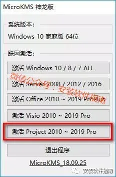 12.点“激活 Project 2010 ~ 2019 Pro”