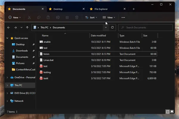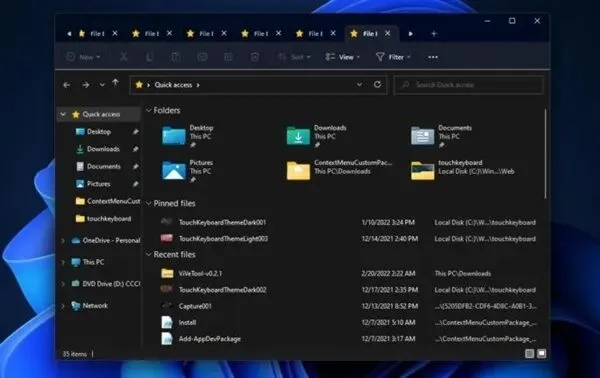 在一个新的累积更新中,微软在Win11再次启用了文件管理器多标签的特性,这意味着在未来的Win11正式版中这很有可能属于正式功能。