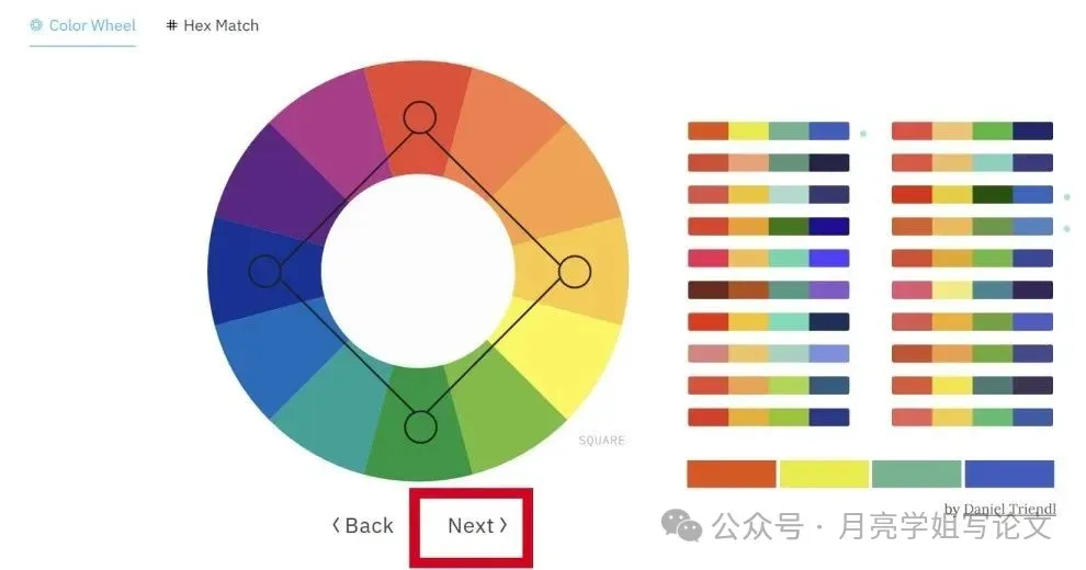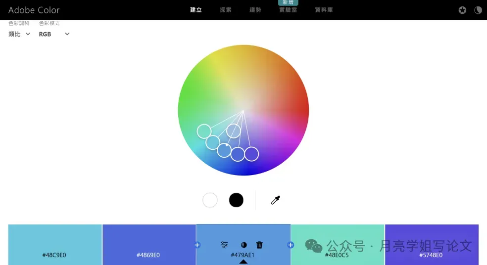 ②生成配色方案:科研人员可以从色轮中选择颜色,Adobe Color会自动生成协调的配色方案。