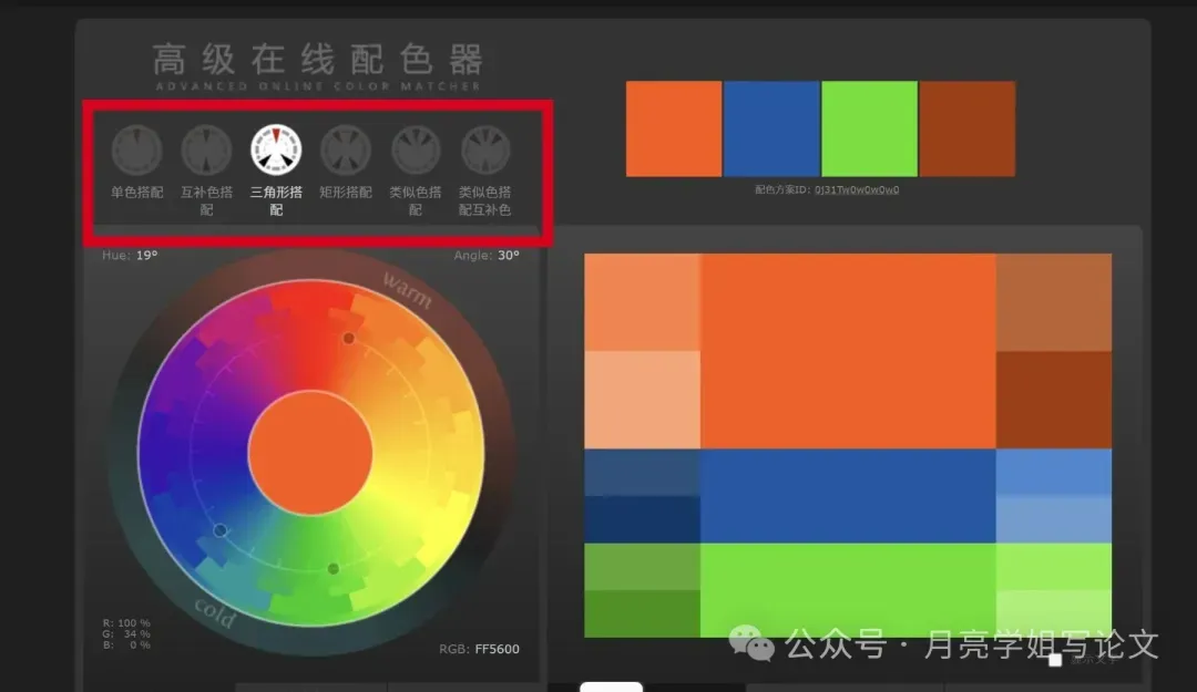 ①配色方案丰富:包括单色搭配、互补色搭配、三角形搭配、矩形搭配、类似色搭配等6种配色方案。