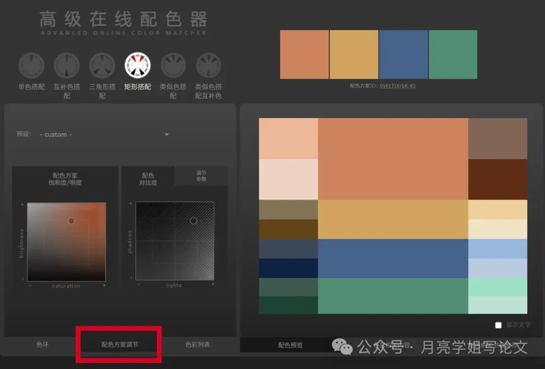 ②自主调节配色方案:在选好色环配色方案后,可以点击“配色方案调节”来调节饱和度和明度。