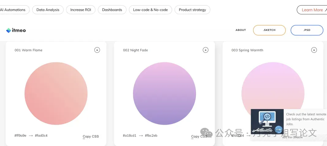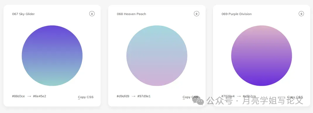 ①渐变色丰富:渐变色在科研绘图中的应用也十分多,WebGradients提供了180多种渐变参考.