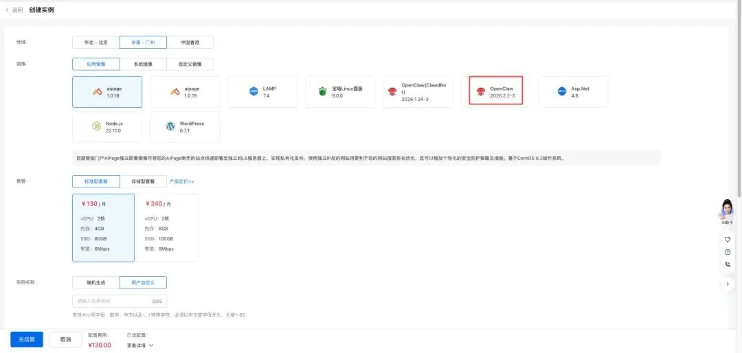 打开百度智能云的 OpenClaw 部署页面,非常直观。