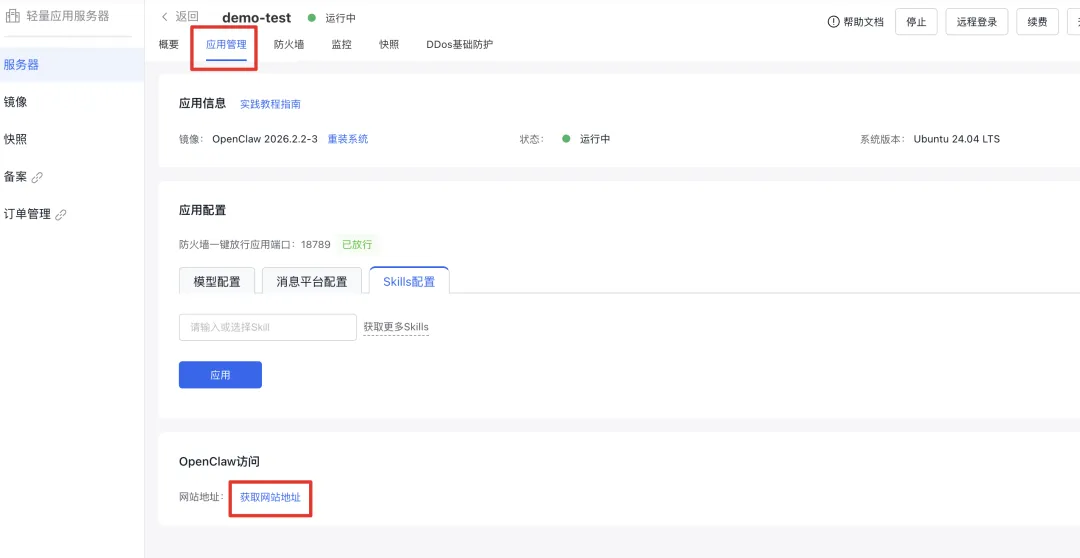 如果想要在OpenClaw官网网站,跟OpenClaw聊天,可以点击“获取网站地址”,点击网站地址跳转至OpenClaw官网网站。