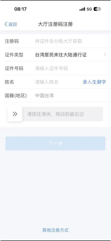台胞携带本人有效身份证件前往办税服务厅获取大厅注册码。大厅注册码有效期为7天,过期需重新申请。