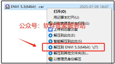 第二步:将下载好的文件选中,右击,解压到……(解压时如遇杀毒软件报错,一定在恢复软件并添加信任)