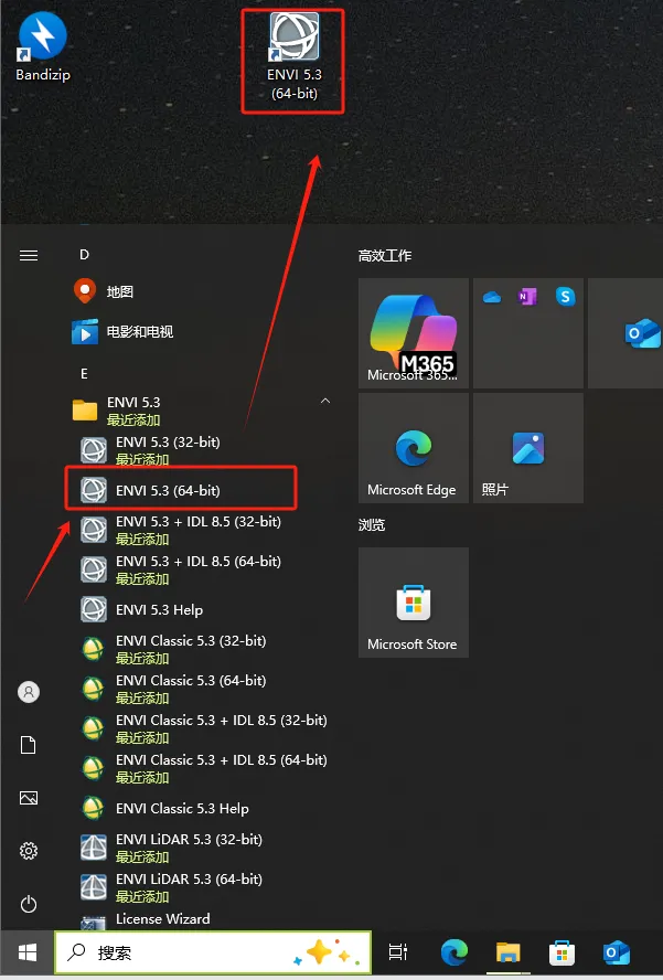 第十八步:点电脑【开始】,找到【ENVI 5.3】程序图标,将其拖到电脑桌面。