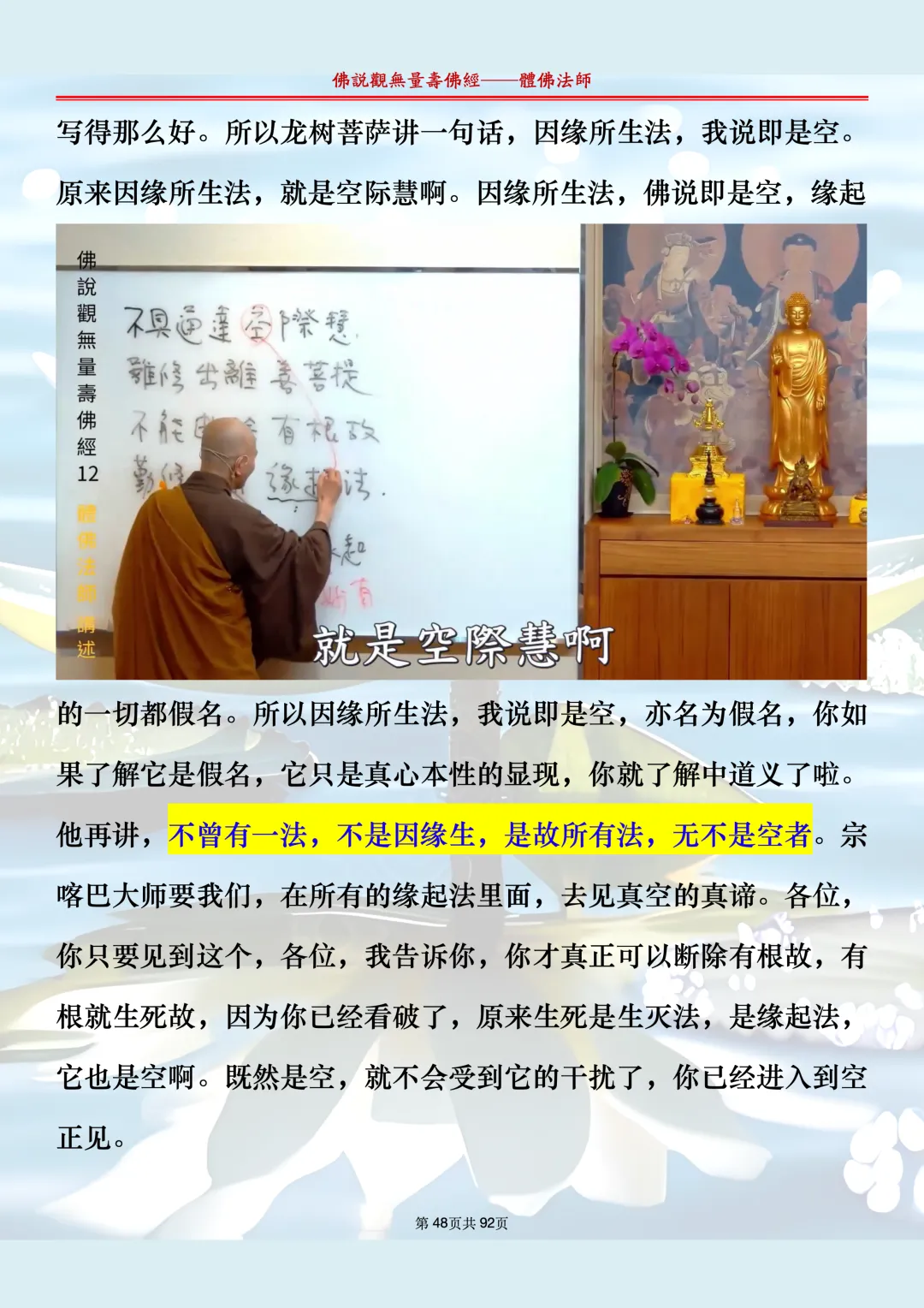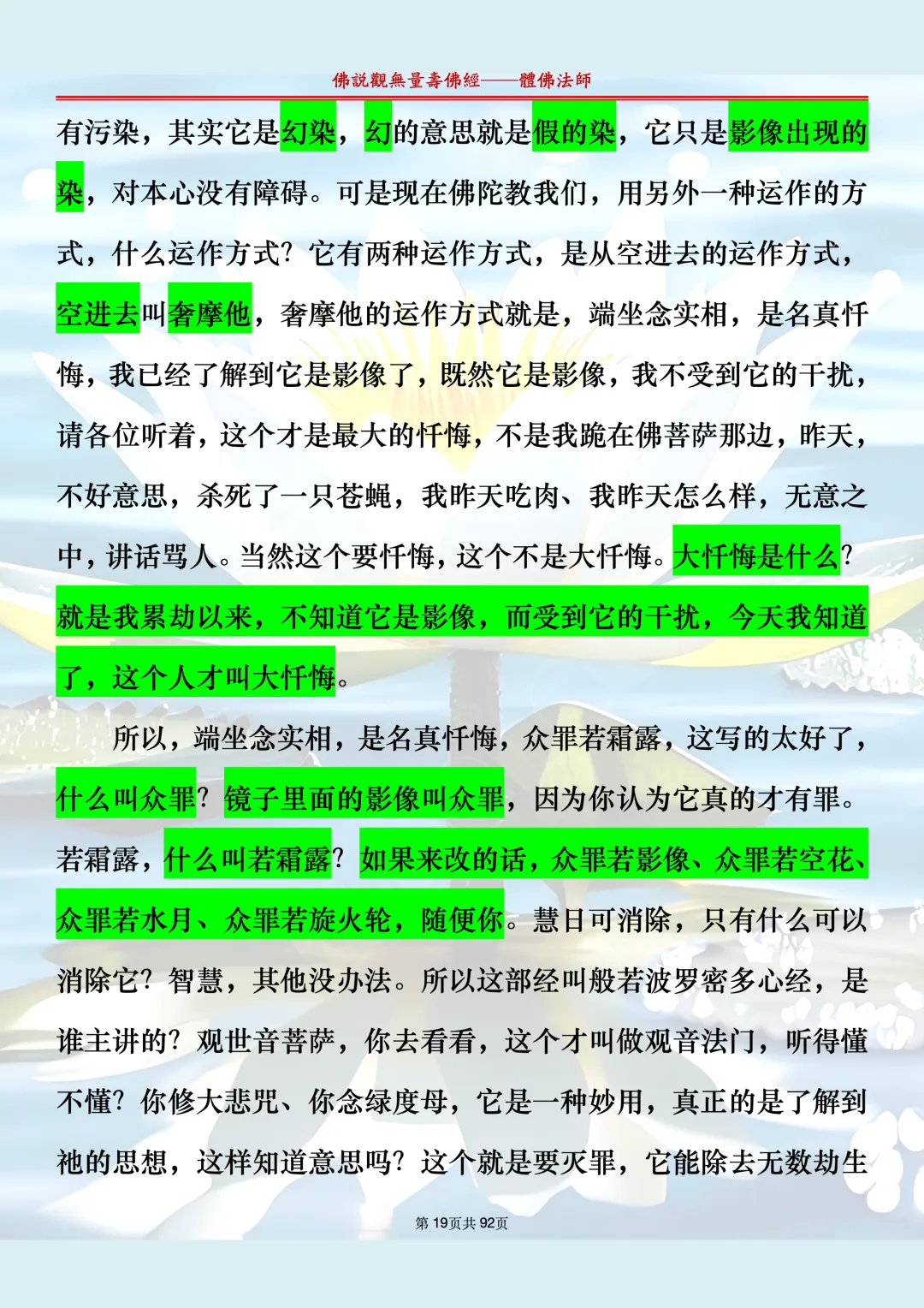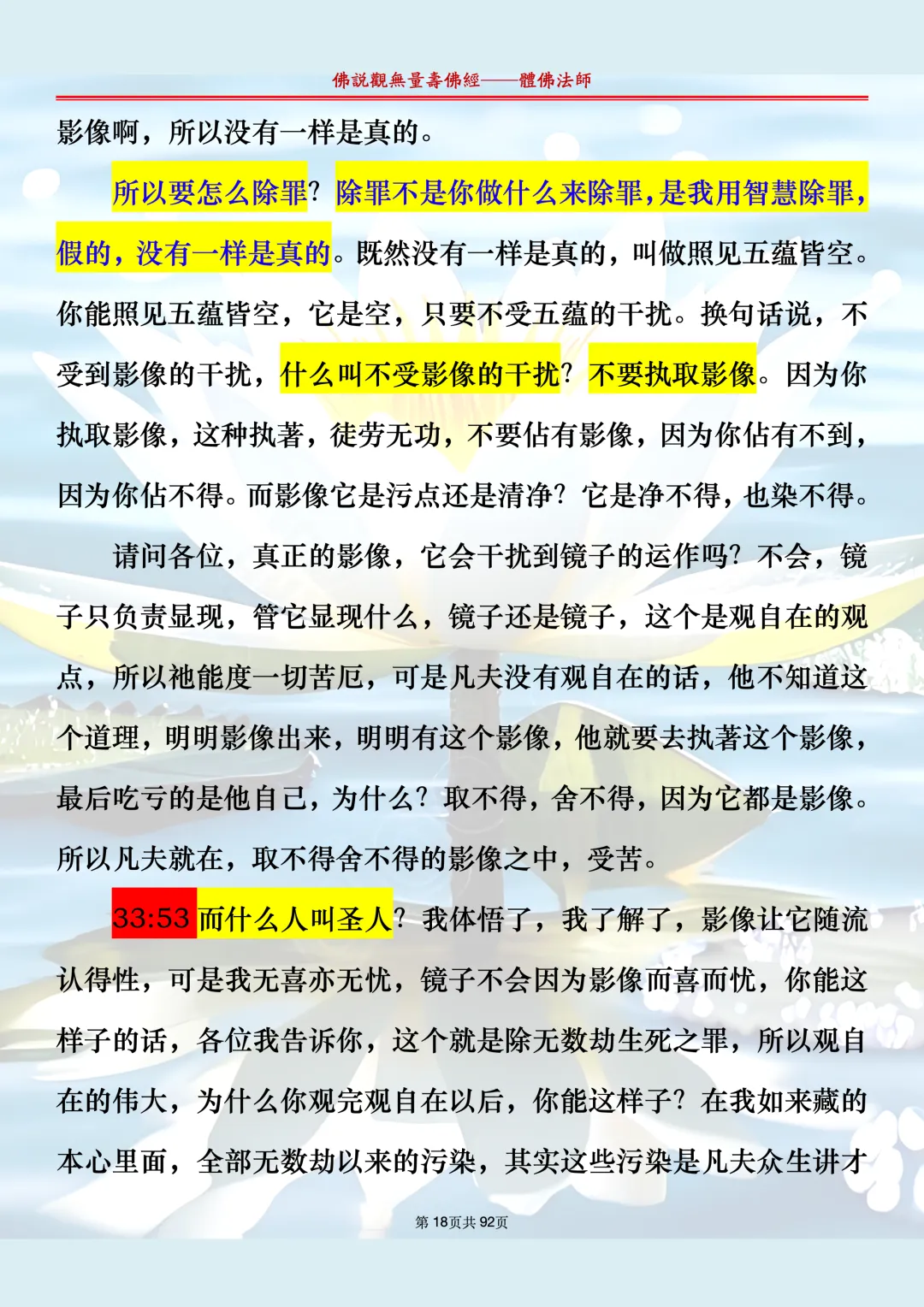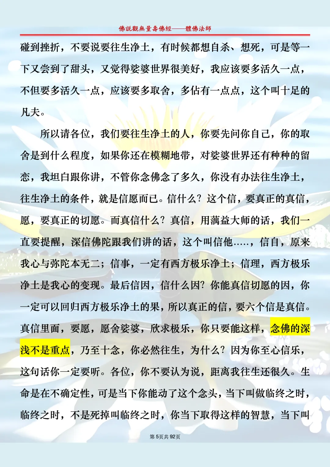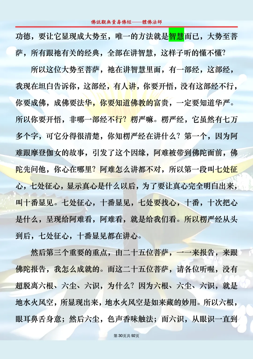 体佛法师讲解的《佛说观无量寿佛经》讲义,文字文档分享,是严格按照视频所讲,一句一句校对而整理,不出自任何团队,也不属于任何团队,也非视频转换软件提取的文字,所以文字准确率高。每一节课分成二段或者三段,依次分享。文字文档,是方便没有时间观看视频的情况下使用,非作他用,大家时间充裕的情况下,重点还是应以法师讲解的视频为主,文字是其次。