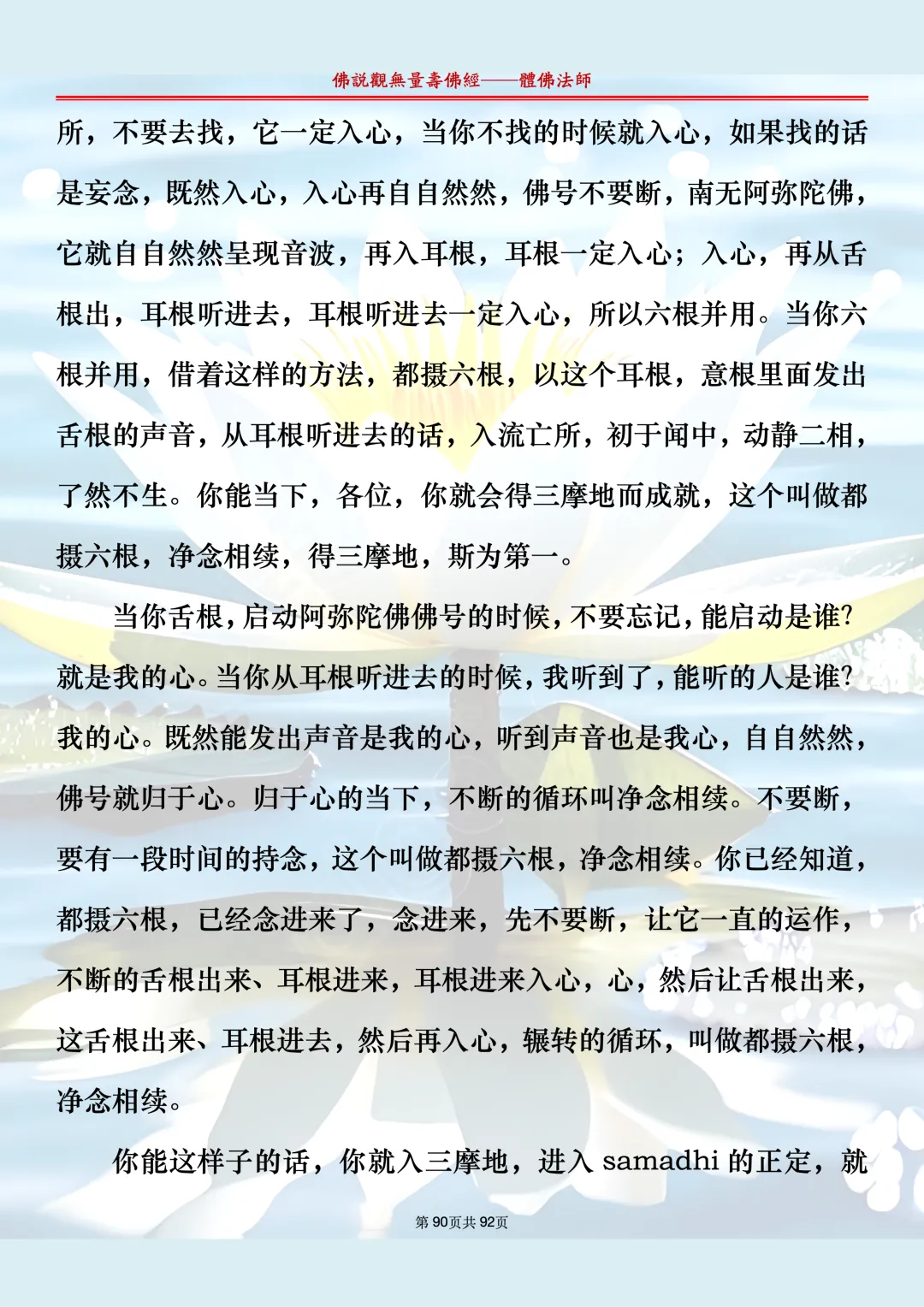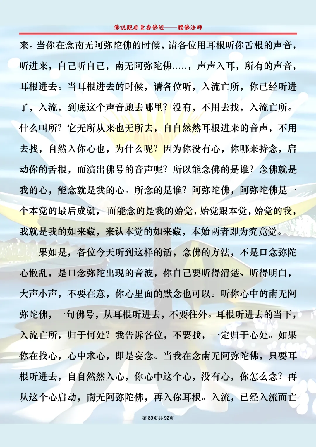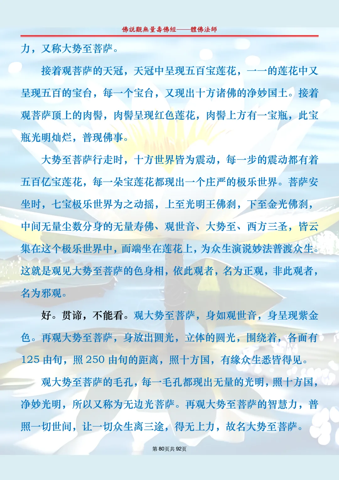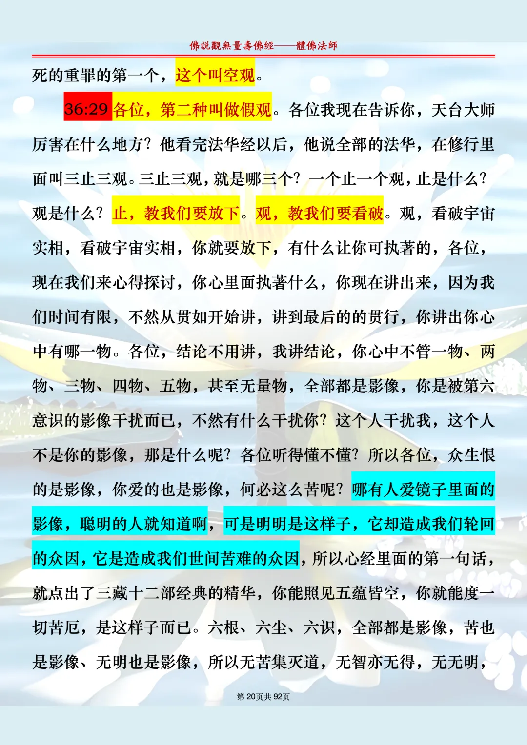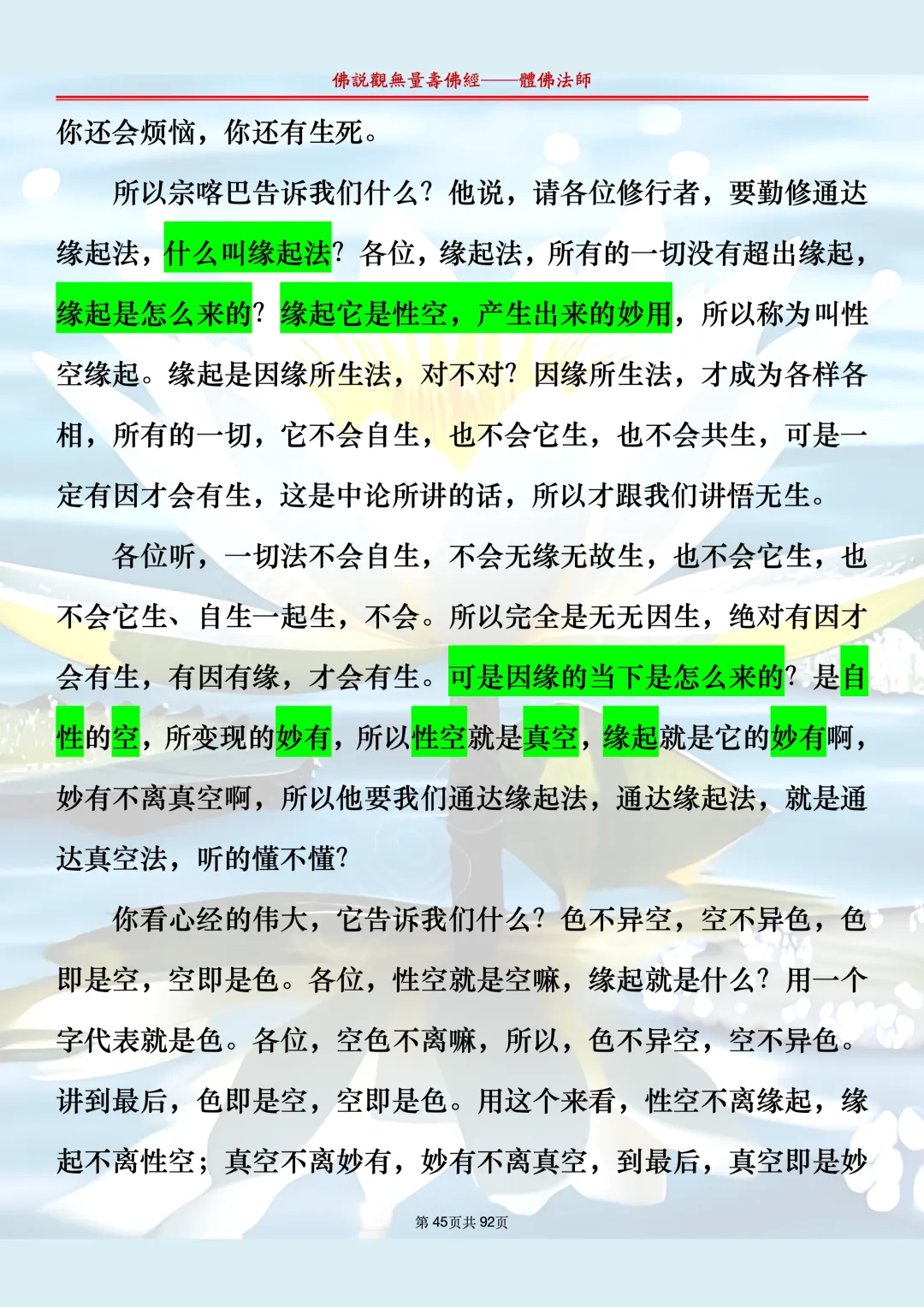 体佛法师讲解的《佛说观无量寿佛经》讲义,文字文档分享,是严格按照视频所讲,一句一句校对而整理,不出自任何团队,也不属于任何团队,也非视频转换软件提取的文字,所以文字准确率高。每一节课分成二段或者三段,依次分享。文字文档,是方便没有时间观看视频的情况下使用,非作他用,大家时间充裕的情况下,重点还是应以法师讲解的视频为主,文字是其次。