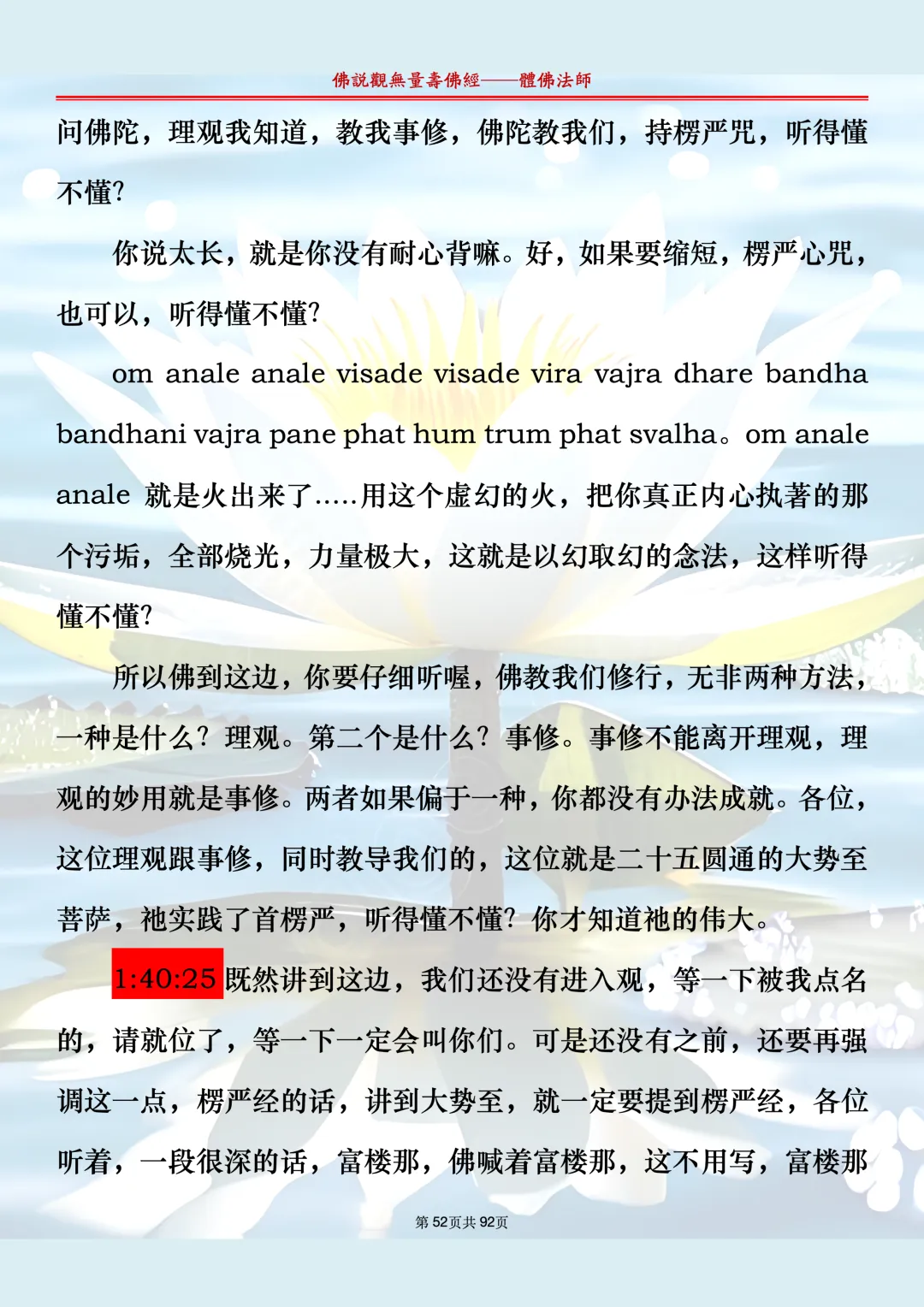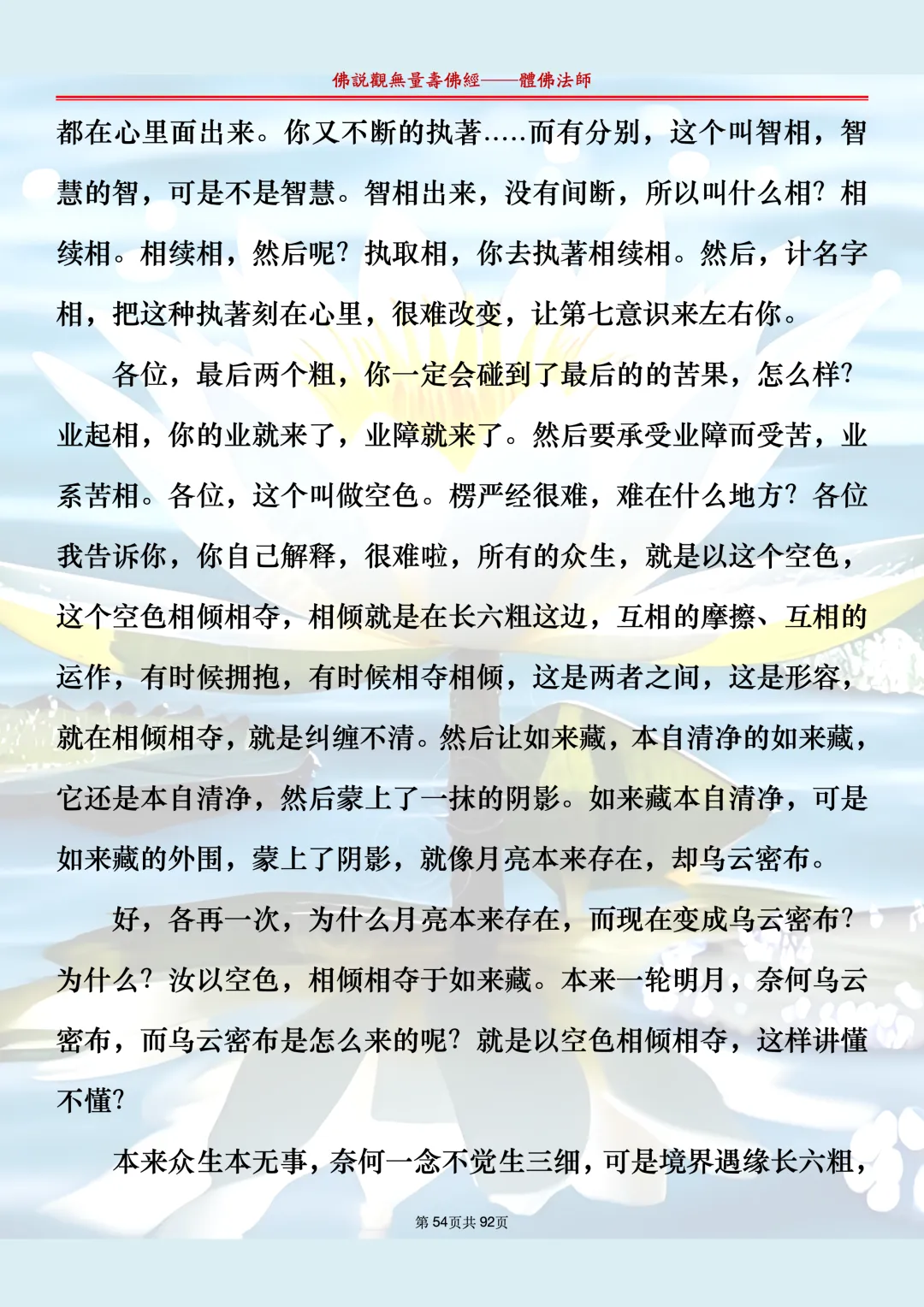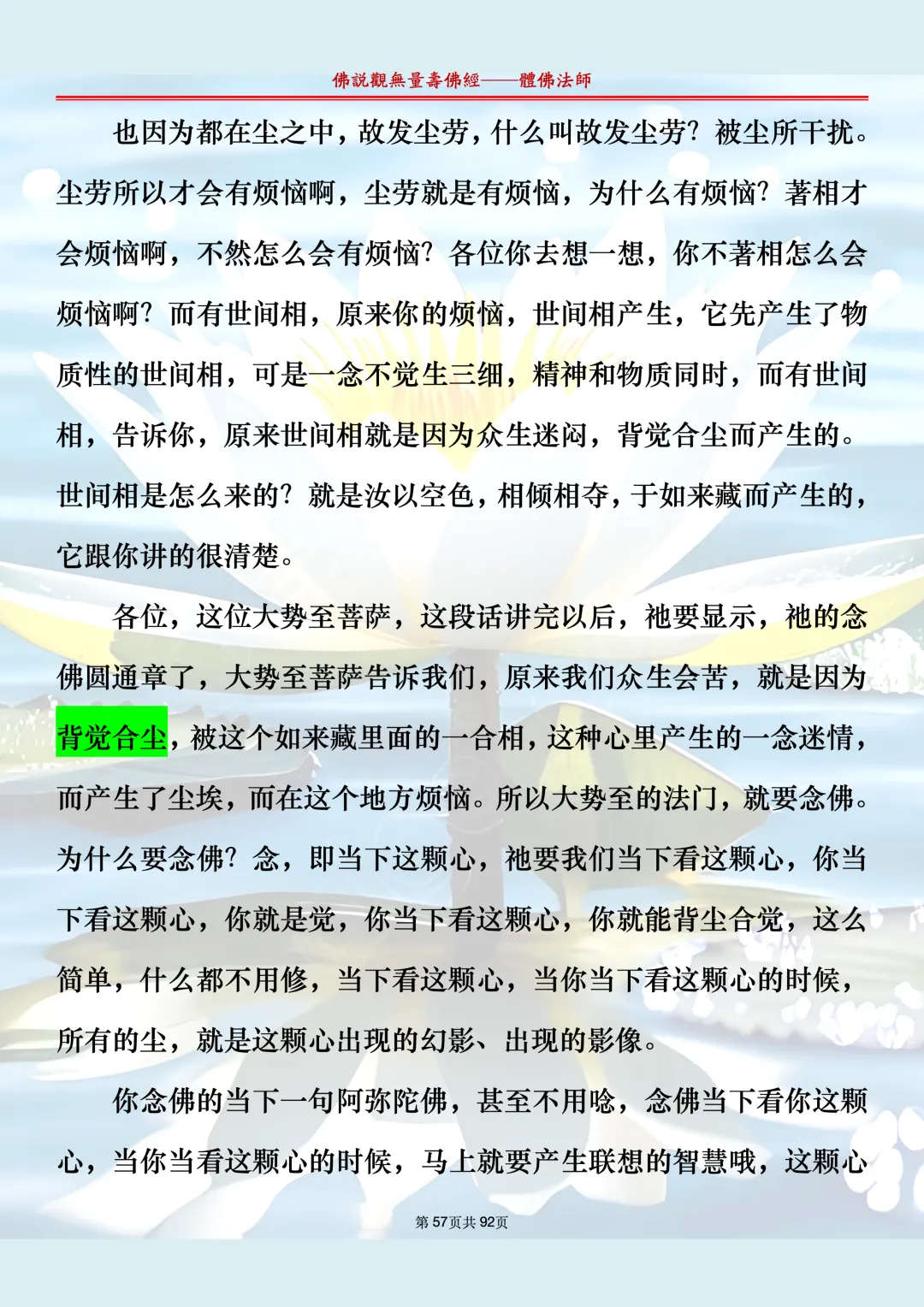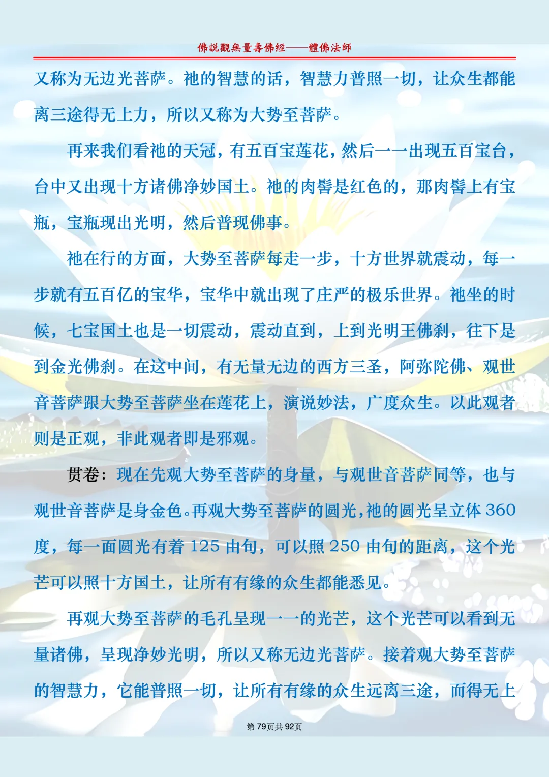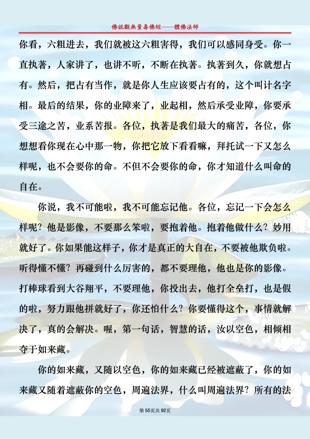 体佛法师讲解的《佛说观无量寿佛经》讲义,文字文档分享,是严格按照视频所讲,一句一句校对而整理,不出自任何团队,也不属于任何团队,也非视频转换软件提取的文字,所以文字准确率高。每一节课分成二段或者三段,依次分享。文字文档,是方便没有时间观看视频的情况下使用,非作他用,大家时间充裕的情况下,重点还是应以法师讲解的视频为主,文字是其次。
