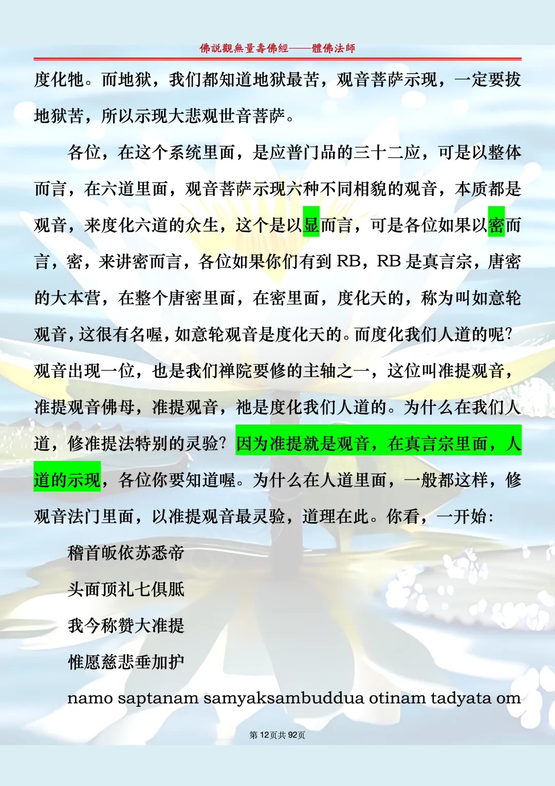 《佛说观无量寿佛经》文字文档 第十二节课