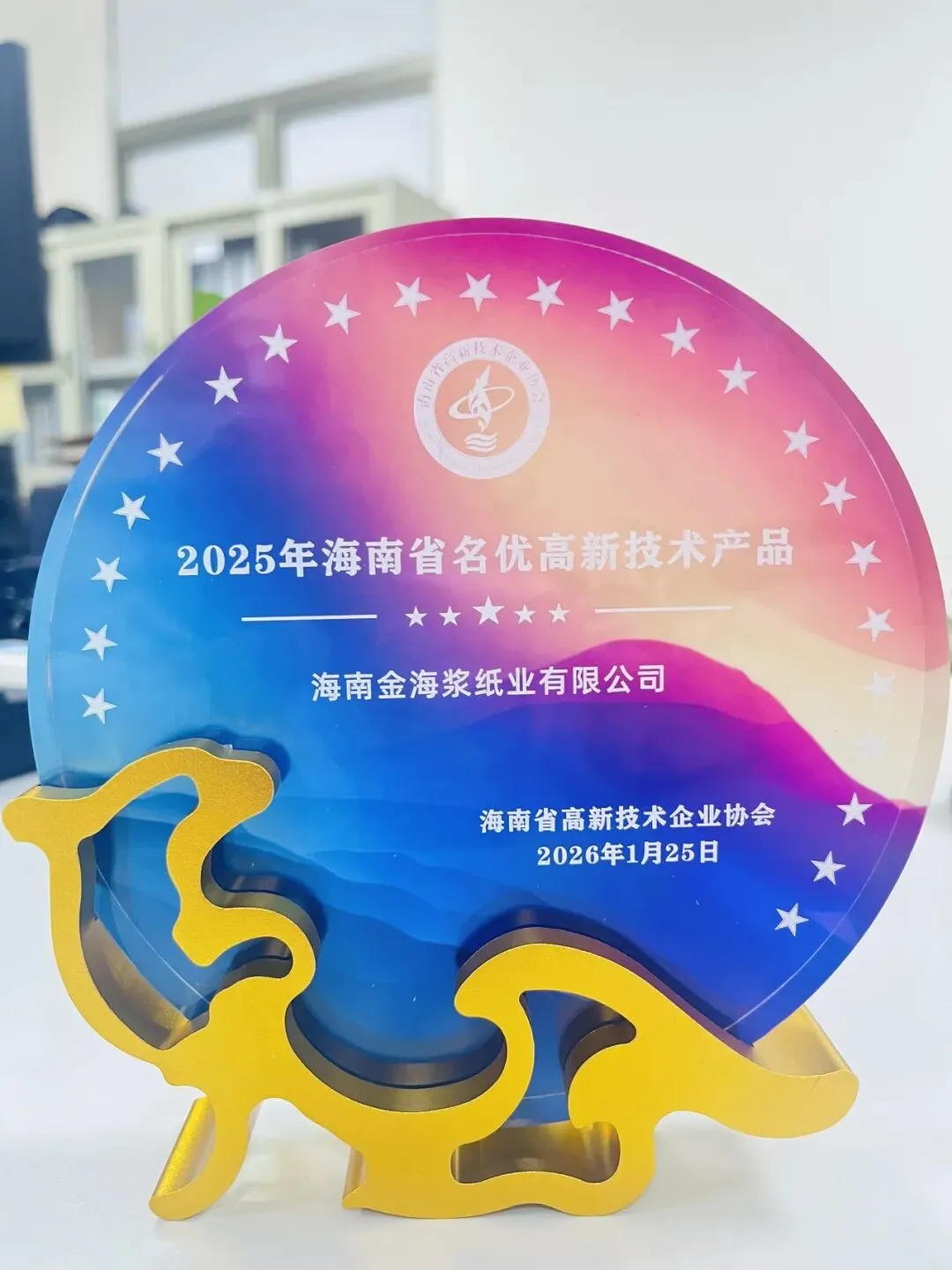 近日,在以“自贸港封关赋能 高新聚力领航”为主题的2026年海南省高新技术企业高质量发展年会上,金海浆纸旗下“亚光双面铜版纸GMH350”“双面铜版纸GAH350”及“龙头牌漂白阔叶木浆”三款浆纸产品,荣获2025年海南省名优高新技术产品认定,成为本届获奖数量最多的企业之一,彰显了金海浆纸在高新技术产业化道路上的深厚积淀与强劲实力,为海南高新技术产业作良好示范效应。