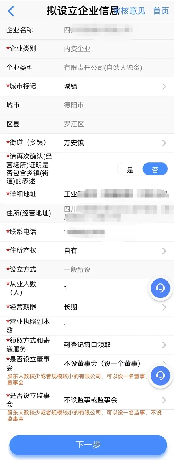 4.填报拟设立企业信息。详细地址须与场所证明材料地址一致,规模较小或者股东人数较少的有限责任公司可不设监事会或监事。