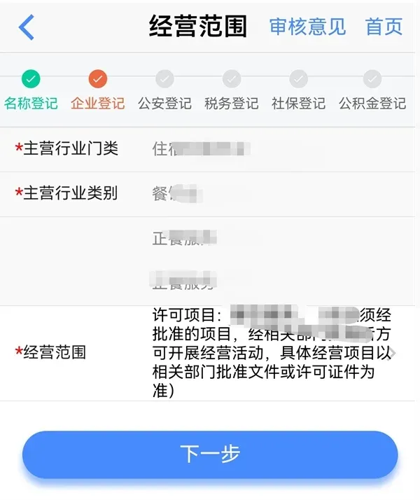 5.填报经营范围信息。特别提醒:①一般事项,可直接选择;②涉及后置许可事项,可选择,但须获得相关许可后才能开展经营;③涉及前置许可事项,需获得相关许可后才能选择该事项。