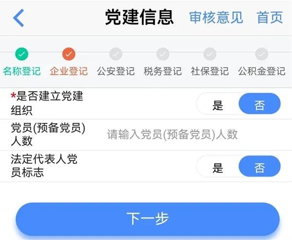 6.填报党建信息。系统默认为“否”,若选择“是”则需按实际情况填写相关信息。