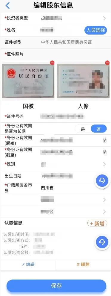 7.填报注册资本及股东出资信息。股东认缴出资时间自设立登记之日起不超过五年,须谨慎填写出资金额。